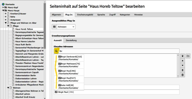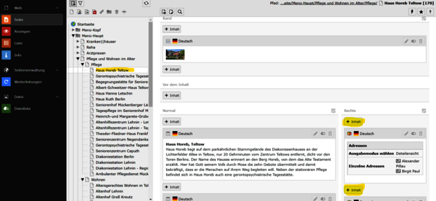Neues Adressfeld erstellen "+Inhalt" , oder über das "Stift-Icon" bearbeiten.