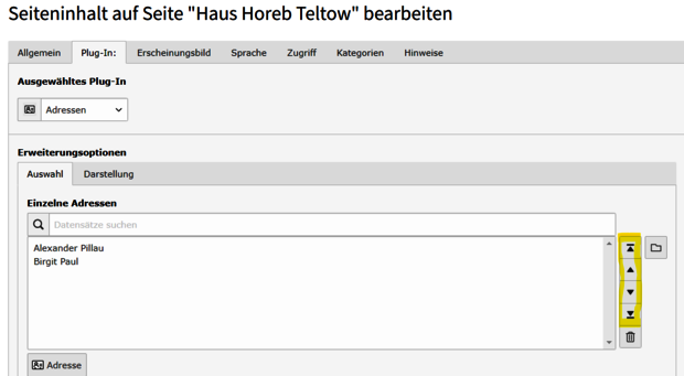 Die Adressen über die Pfeiltasten rechts in die entsprechende Reihenfolge bringen.