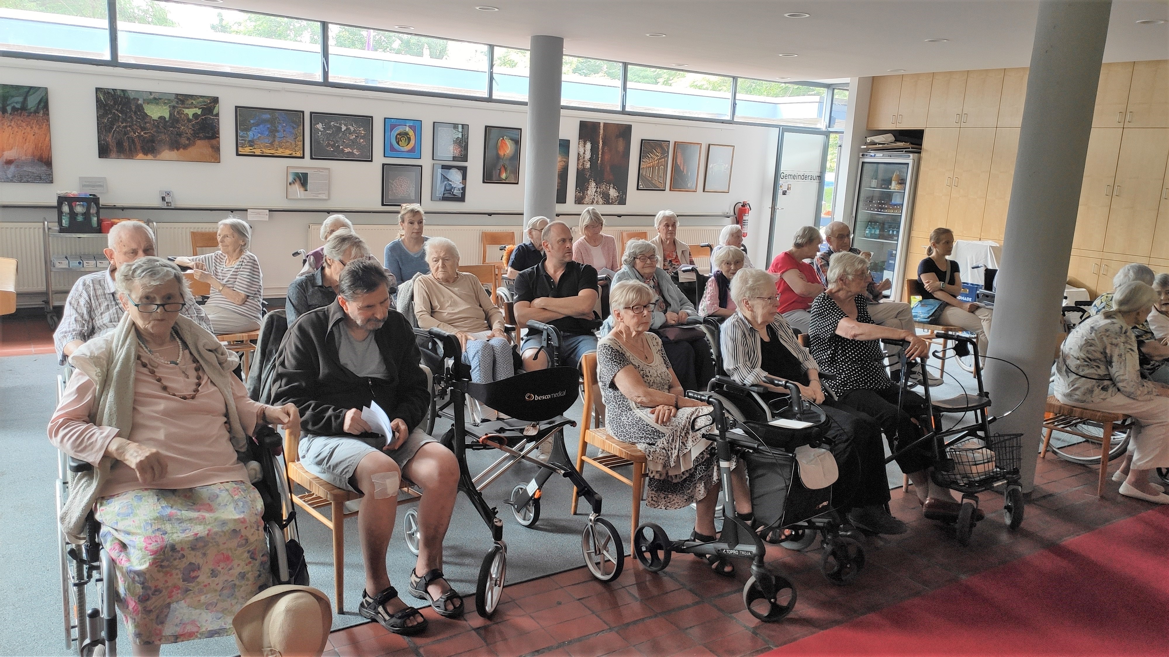 Um 11:30 Uhr wurden unsere Bewohnerinnen und Bewohner der Grüberhäuser bereits mit einem tollen Dudelsackauftakt vor der Kirche begrüßt. Einladend standen Bierzeltgarnituren parat, um anschließend bei bestem Wetter die Gemeinschaft genießen zu können.