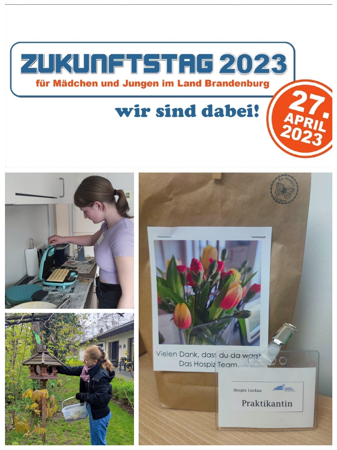 Am 27. April fand der Zukunftstag für Schülerinnen und Schüler ab Klasse 7 statt. Im Hospiz waren Henriette aus der 7. und Janina aus der 8. Klasse und haben in den Hospizalltag geschnuppert. Sie haben das Haus und die Abläufe kennengelernt und einige Handgriffe in der Pflege begleitet. Sehr gefreut haben wir uns, dass sie die Vogelhäuschen mit neuen Körnern bestückt und Waffeln für unser Angehörigencafé gebacken haben. Wir freuen uns über das Interesse an unserem Haus und an der Arbeit und wünschen den beiden alles Gute.