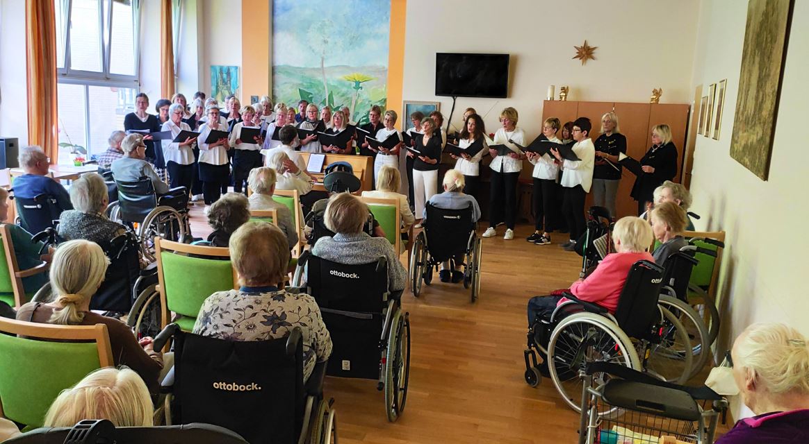 Noch immer summen unsere Bewohnerinnen und Bewohner in den Heinrich- und Margarete-Grüberhäusrn Melodien, die sie beim Konzert des Golfchors gehört haben.