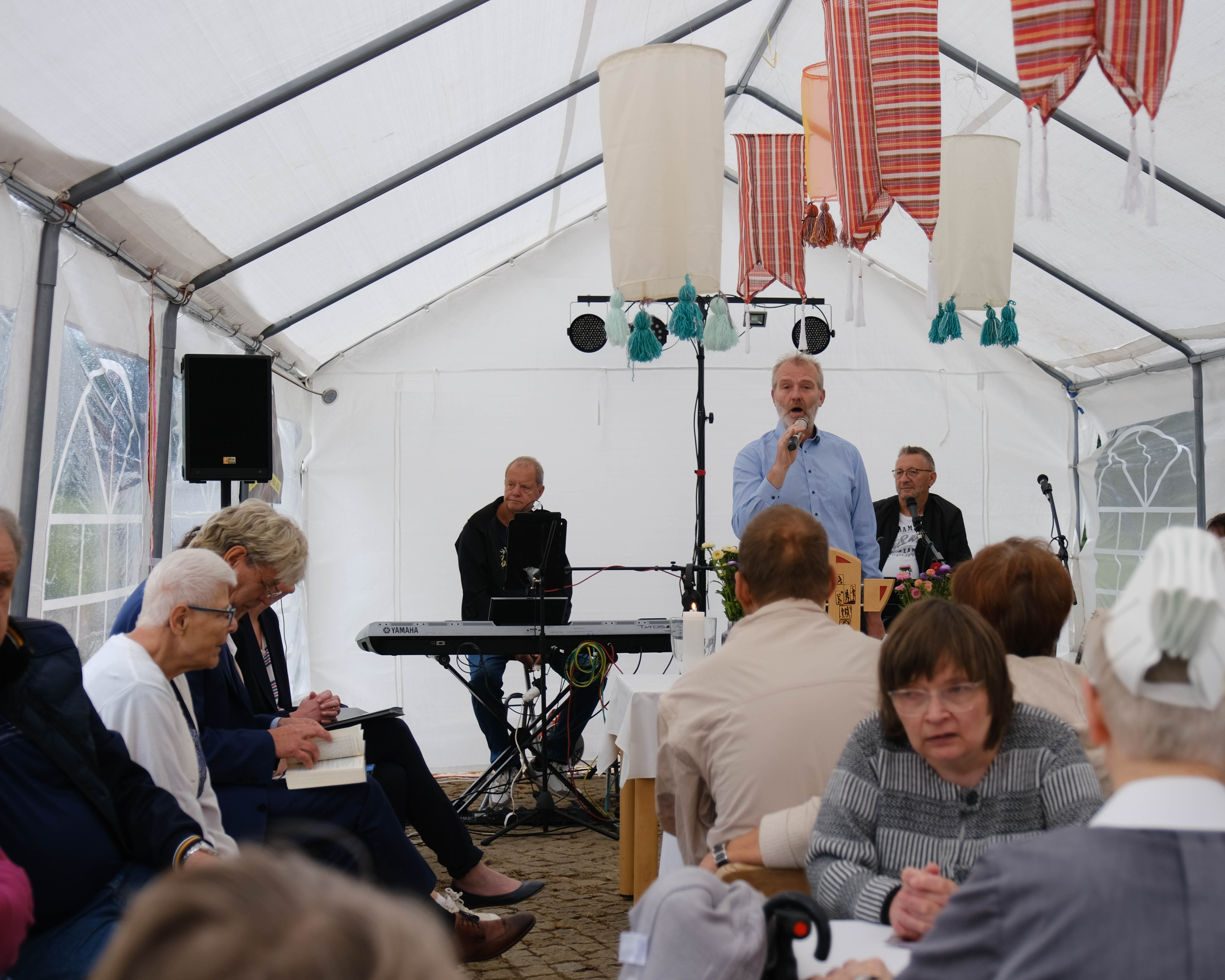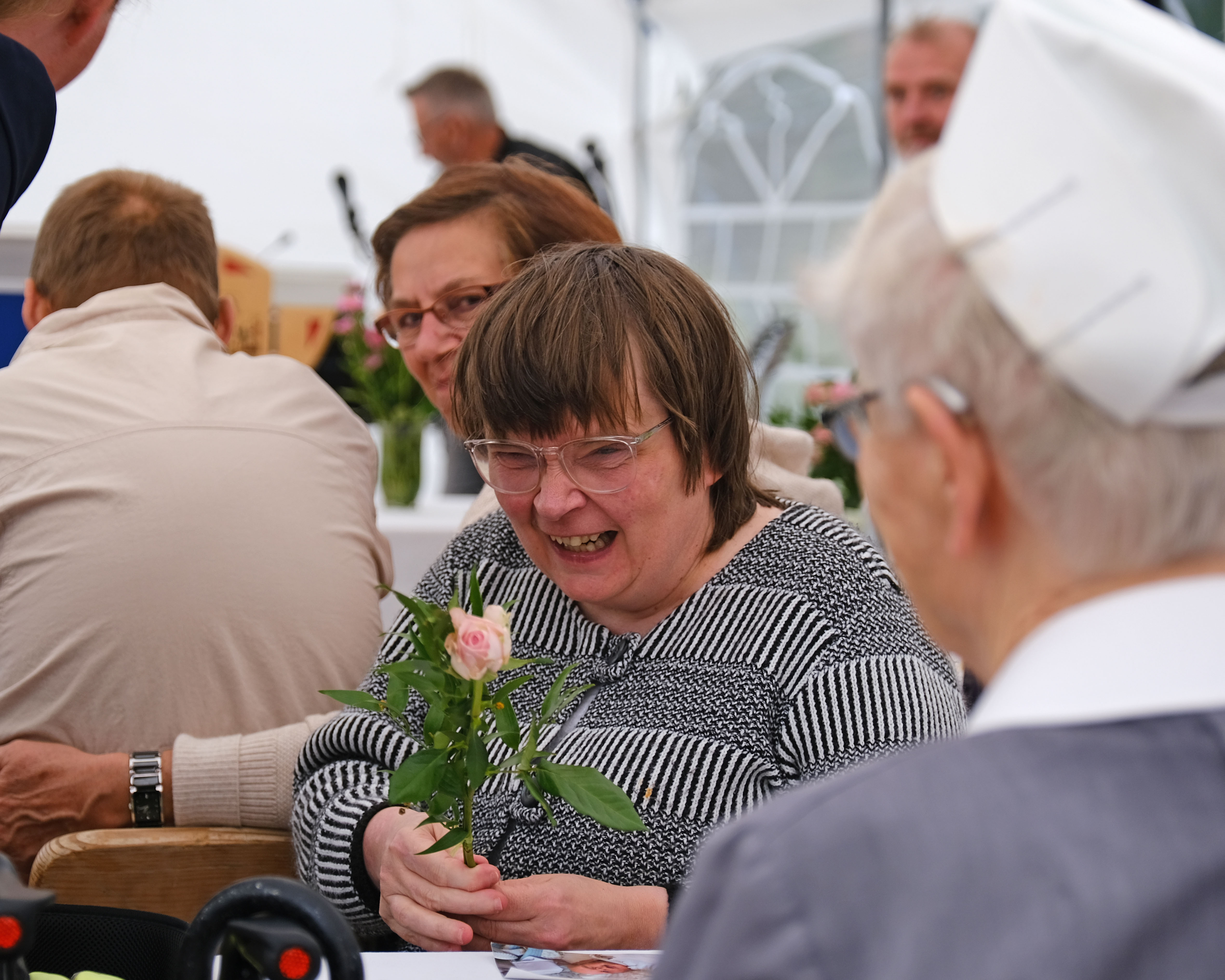 Nach einer Andacht, einem historischen Rückblick und Glückwünschen durch Vorstand, Geschäftsführung und Einrichtungsleitung wurden die Bewohnerinnen und Bewohner geehrt, die seit 20 Jahren im Haus Kana wohnen. Bei köstlichen Snacks, leckeren Kuchen und Kaffee kamen die Gäste, Bewohnerinnen und Bewohner sowie Mitarbeitenden ins Gespräch und feierten das Jubiläum mit Musik und viel guter Stimmung.