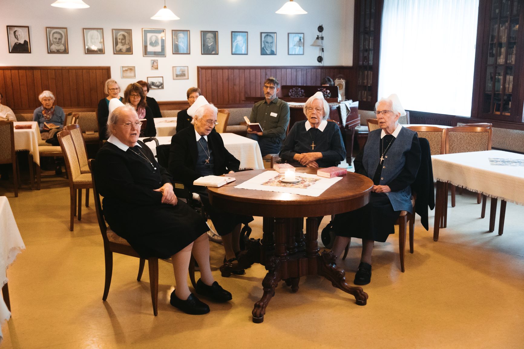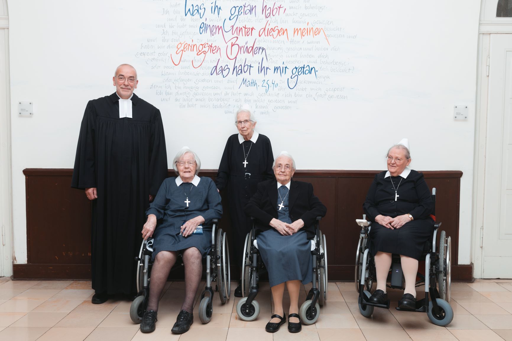 Aus diesem Anlass gab es am vergangenen Freitag eine kleine Feierstunde mit Andacht und gemeinsamem Essen. Besonders freudig waren die Schwestern, dass Sr. Christa aus Erfurt nach Halle kam. Sie hatte ihren Dienst zu großen Teilen im Auguste-Victoria-Stift absolviert und lebt deshalb auch im Ruhestand dort.