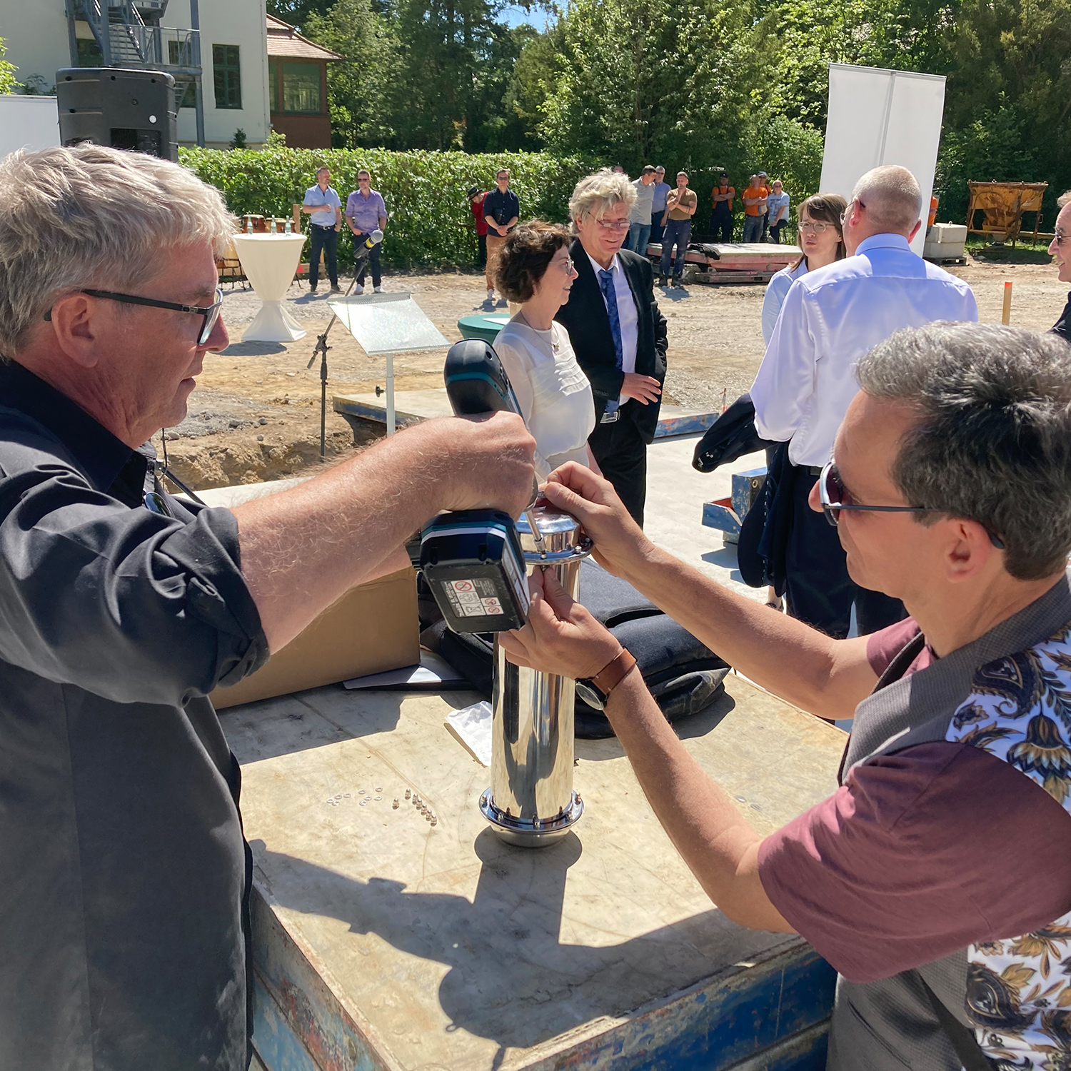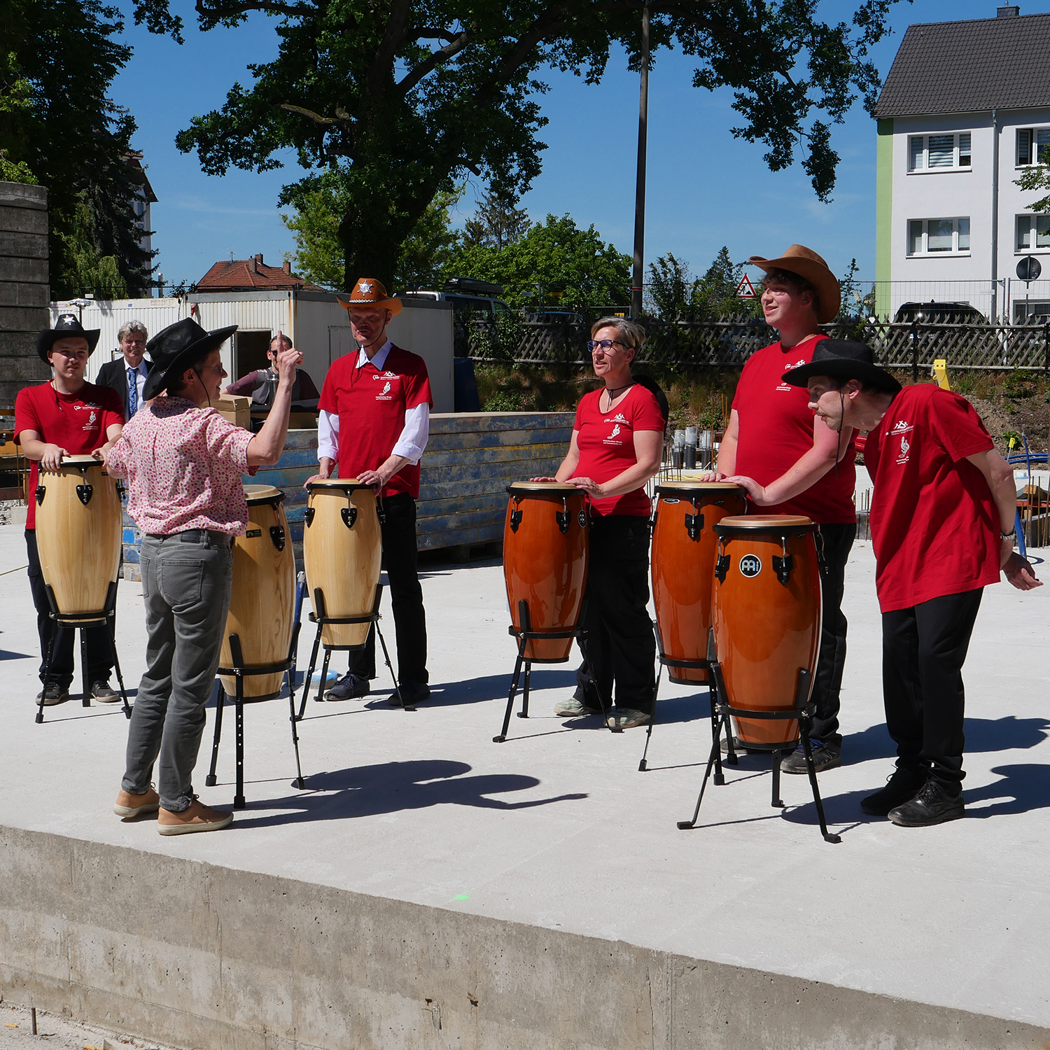 Die Grundsteinlegung wurde durch eine Andacht und feierliche Zeremonie begangen, wobei die inklusive Trommelgruppe „Inclumaniac“ für einen musikalischen Rahmen sorgte. Es war eine großartige Gelegenheit, sich mit den Bewohnerinnen und Bewohner, Mitarbeitenden und Unterstützerinnen und Unterstützern auszutauschen und gemeinsam auf die Zukunft zu blicken.
