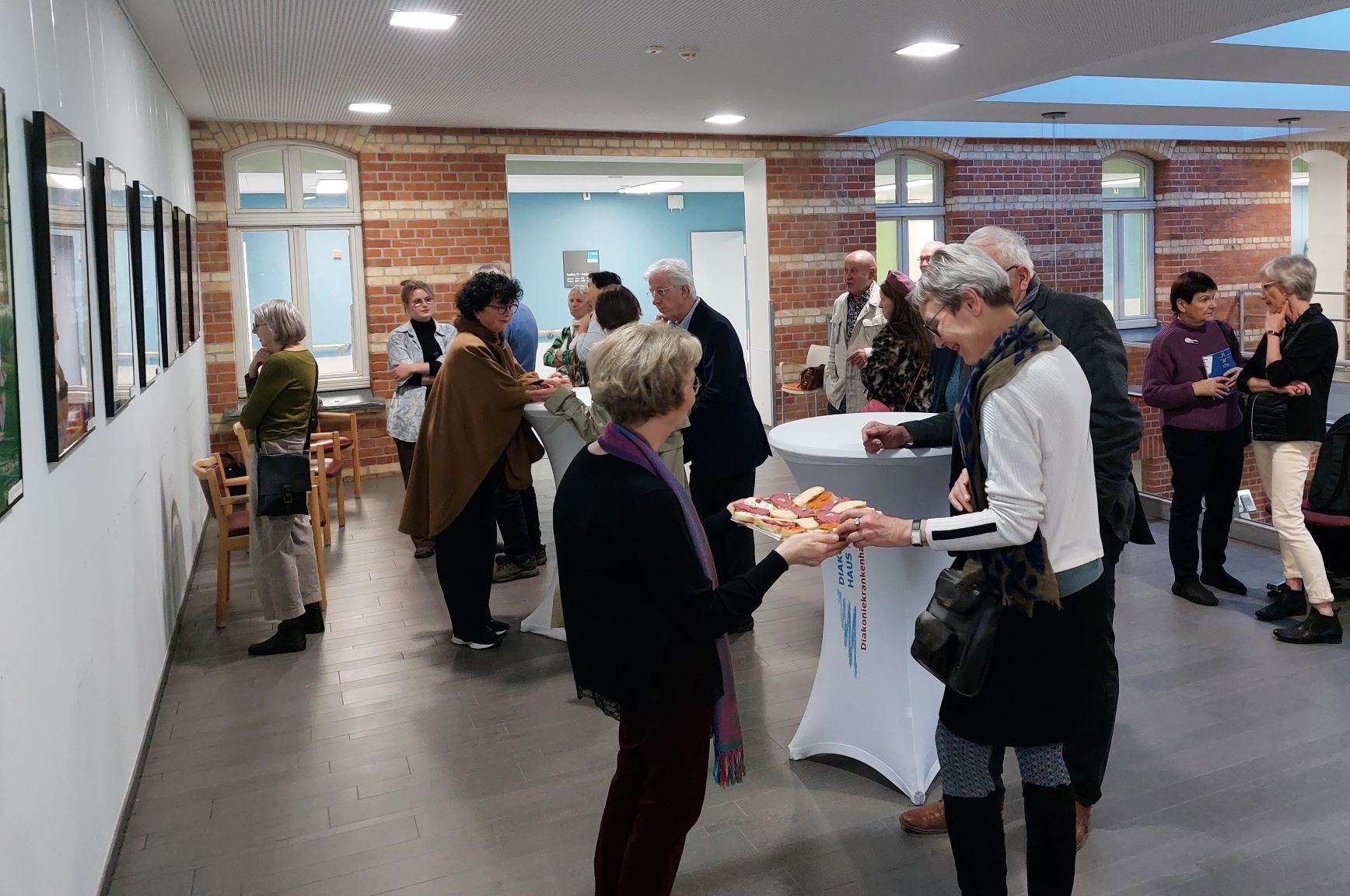 Im Foyer des Diakoniekrankenhauses Halle werden in unregelmäßigen Abständen künstlerische Arbeiten ausgestellt um Patientinnen und Patienten, die länger im Krankenhaus verweilen müssen, einen Ort der Ablenkung zu bieten.