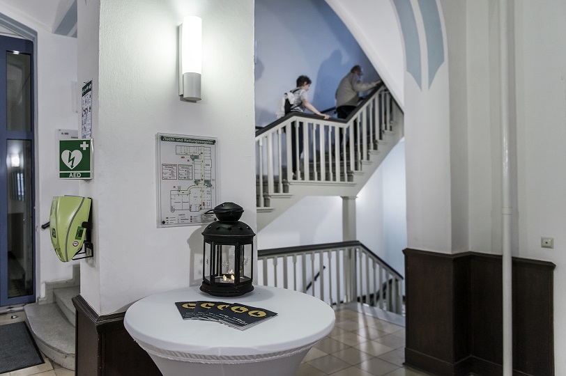 Ähnlich groß was das Interesse an der Nachtwanderung durch das Mutterhaus. Mit Nachtwächterlaterne ausgerüstet begleiteten die Praxisanleiterin Heike Mellmann und ein Auszubildender die stetig wachsende Gruppe der Interessierten in das Mutterhaus. Neben der Hausbesichtigung gab es die Möglichkeit, sich bei Spiel und Spaß über die lange Ausbildungstradition im Mutterhaus Halle zu informieren.