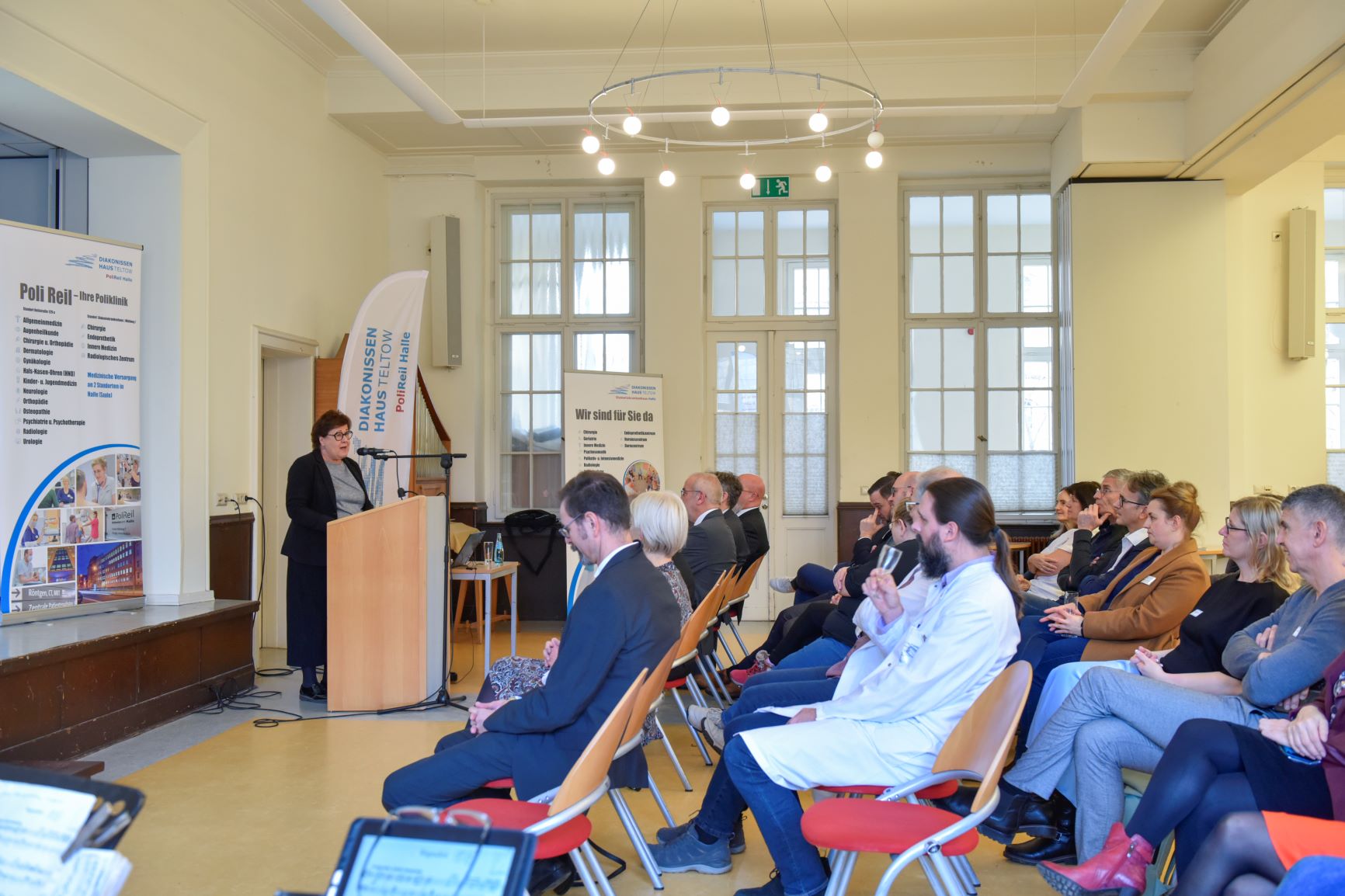 Zum Festempfang anlässlich des Jubiläums 75 Jahre Poli Reil waren auch Gesundheitsministerin Petra Grimm-Benne und Beigeordnete Judith Marquardt zu Gast im Mutterhaus. Sie betonten in ihren Grußworten den Stellenwert, den die Poli Reil bei der ambulanten Versorgung in Halle und Umkreis hat. Gleichzeitig wiesen Sie auf die Veränderungen hin, die mit der zunehmenden Ambulantisierung anstehen. Diesen Punkt nahm auch AOK-Vorstand Ralf Dralle in seinem Grußwort auf und ermutigte die Einrichtung, sich in den anstehenden Gesprächen und Verhandlungen aktiv einzubringen. Veränderungen seien nur unter Mitsprache derjenigen gut zu meistern, die diese Veränderungen tragen.