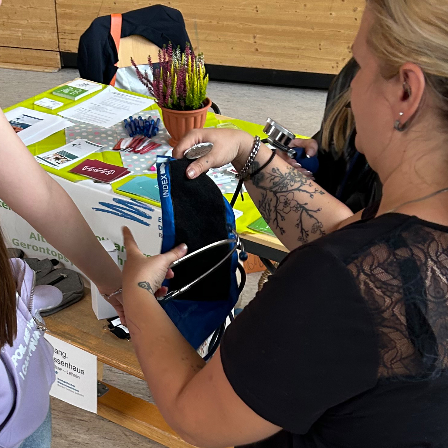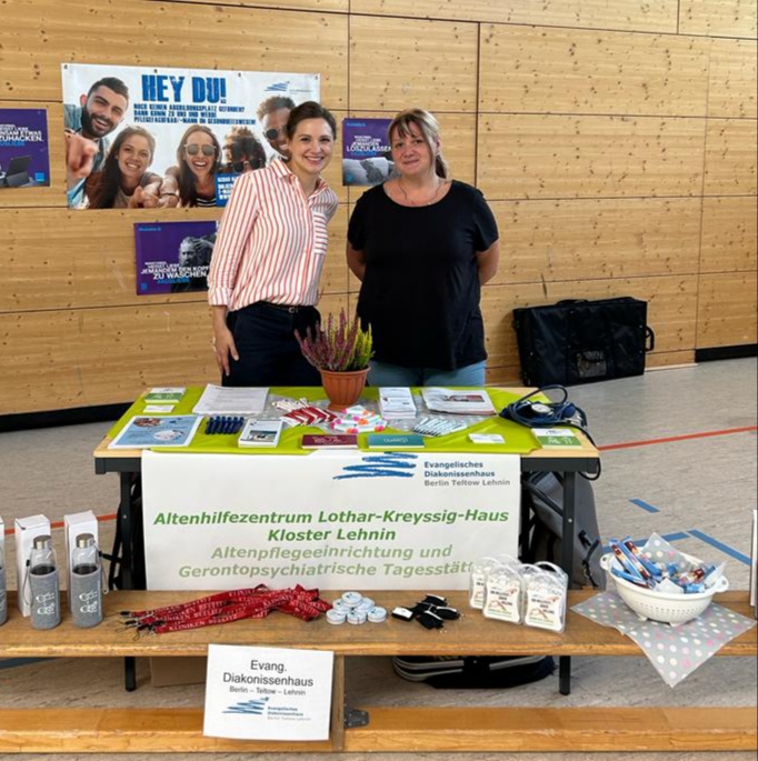 Am 20. September 2023 war unser Altenhilfezentrum Lehnin (Lothar-Kreyssig-Haus) mit einem Stand auf der Ausbildungsmesse der Heinrich Julius Bruns Grund- und Gesamtschule Lehnin vertreten. Wir informierten interessierte Schülerinnen und Schüler über die verschiedenen Ausbildungsmöglichkeiten in unserem Haus und lernten dabei viele motivierte und engagierte junge Menschen kennen. Wer nicht an der Veranstaltung teilnehmen konnten, sich aber trotzdem über die unterschiedlichen Ausbildungsmöglichkeiten informieren möchte, findet hier weitere Informationen sowie Ansprechpartnerinnen und Ansprechpartner. Vielen Dank für diese schönen und interessanten Begegnungen.