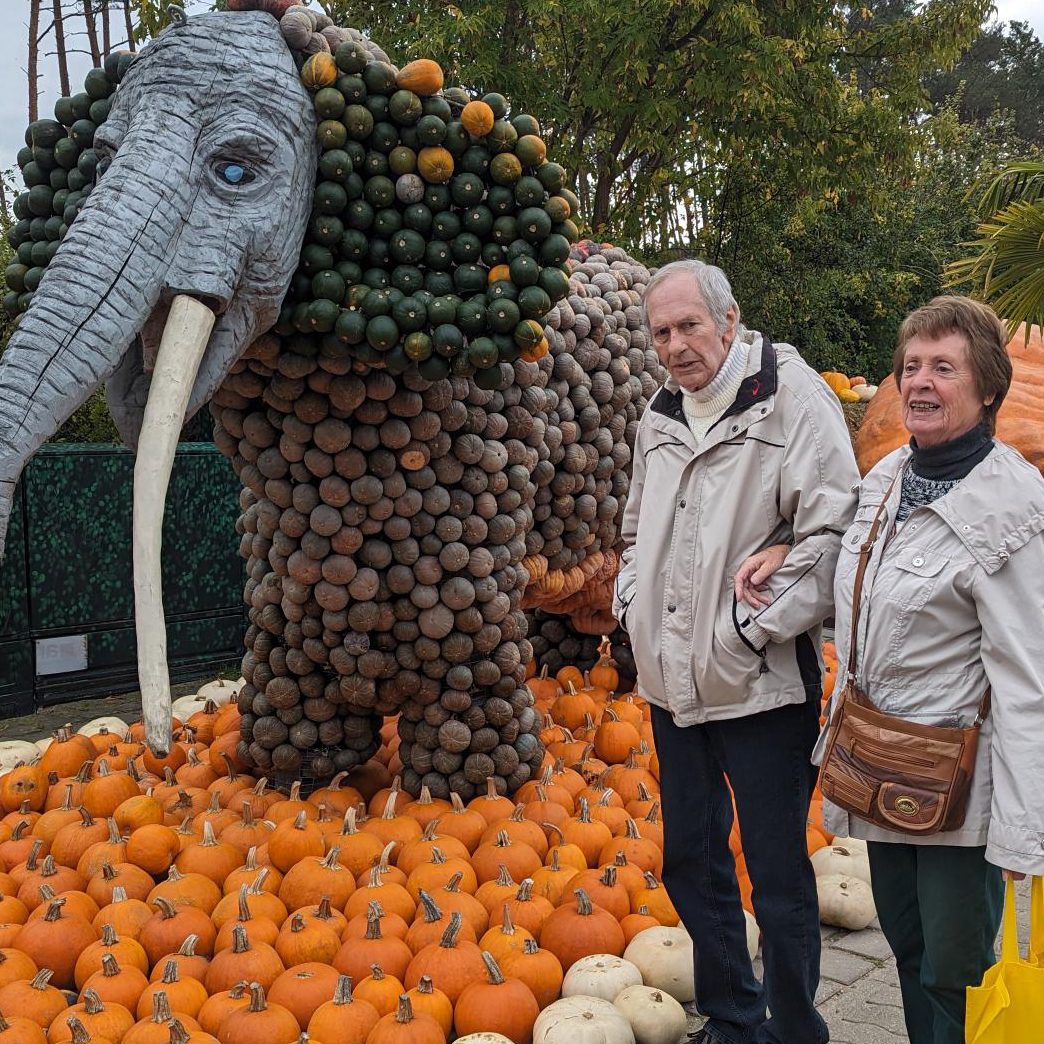 Der Tag begann mit einem köstlichen Senioren-Frühstück, bei dem sich alle in gemütlicher Atmosphäre austauschen und stärken konnten. Nach dem Frühstück ging es für alle auf zur Kürbis-Ausstellung auf dem Hofgelände. Schon von Weitem waren die beeindruckenden Ausmaße der Kürbisse erkennen. Alle waren erstaunt darüber, wie viele unterschiedliche Kürbisse es gibt. Das diesjährige Ausstellungsthema lautet „Disney“. Die Teilnehmerinnen und Teilnehmer waren begeistert von der liebevollen Gestaltung der Ausstellung und der Möglichkeit, die Figuren hautnah zu erleben.