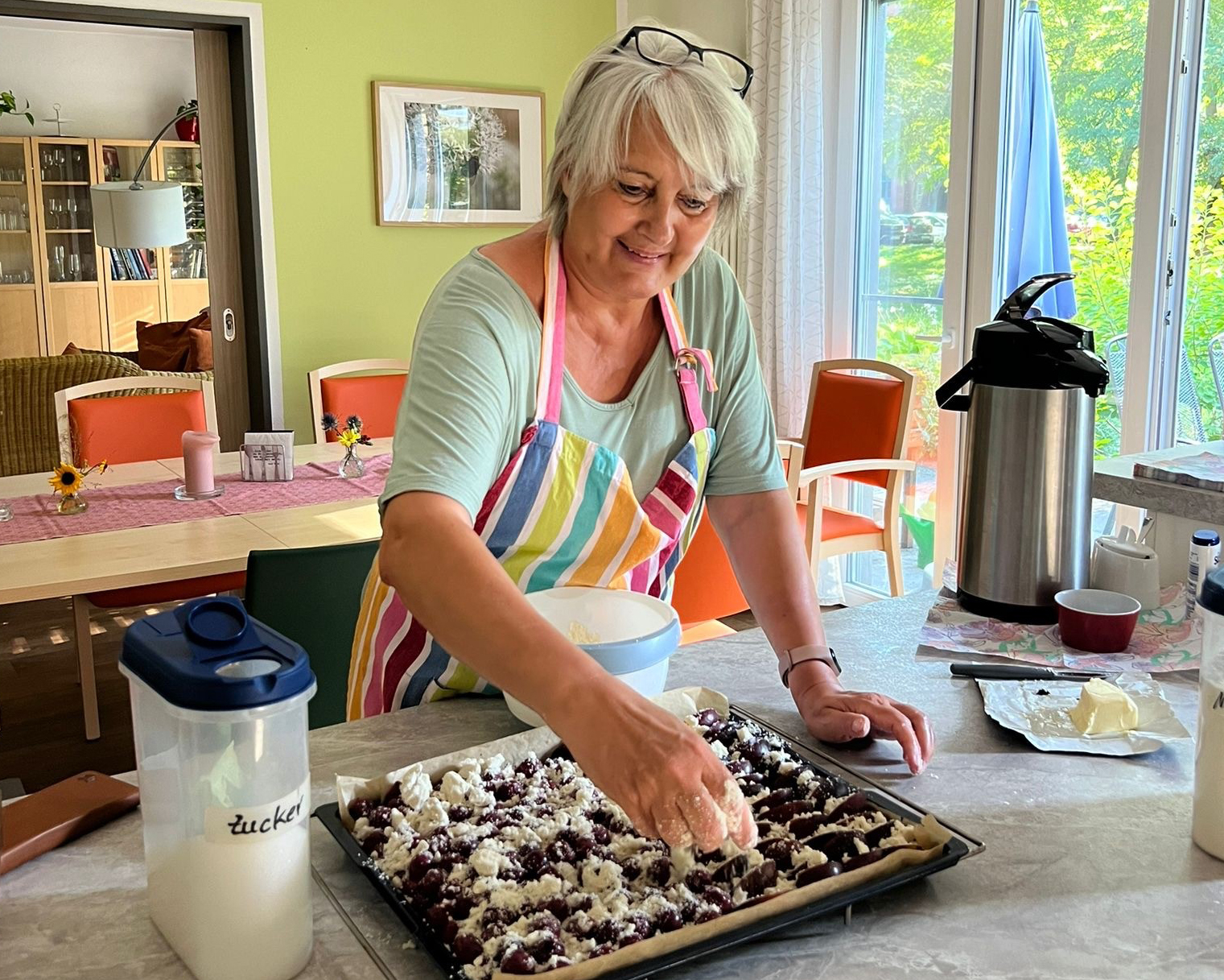 In unserem Hospiz in Potsdam wurde wieder fleißig gebacken. Besonders gefreut haben wir uns über die tatkräftige Unterstützung eines Gastes. Jeden Donnerstag um 15 Uhr findet im Hospiz das Angehörigen Café statt, bei dem es immer frisch gebackenen Kuchen gibt. Die liebevoll zubereiteten Köstlichkeiten sehen nicht nur hervorragend aus, sondern erfüllen mit ihrem süßlichen Duft das gesamte Haus. Viele Gäste und ihre Angehörigen genießen an diesen Nachmittagen die verschiedenen „Backwunder“, und in geselligen Runden finden inspirierende Gespräche statt.