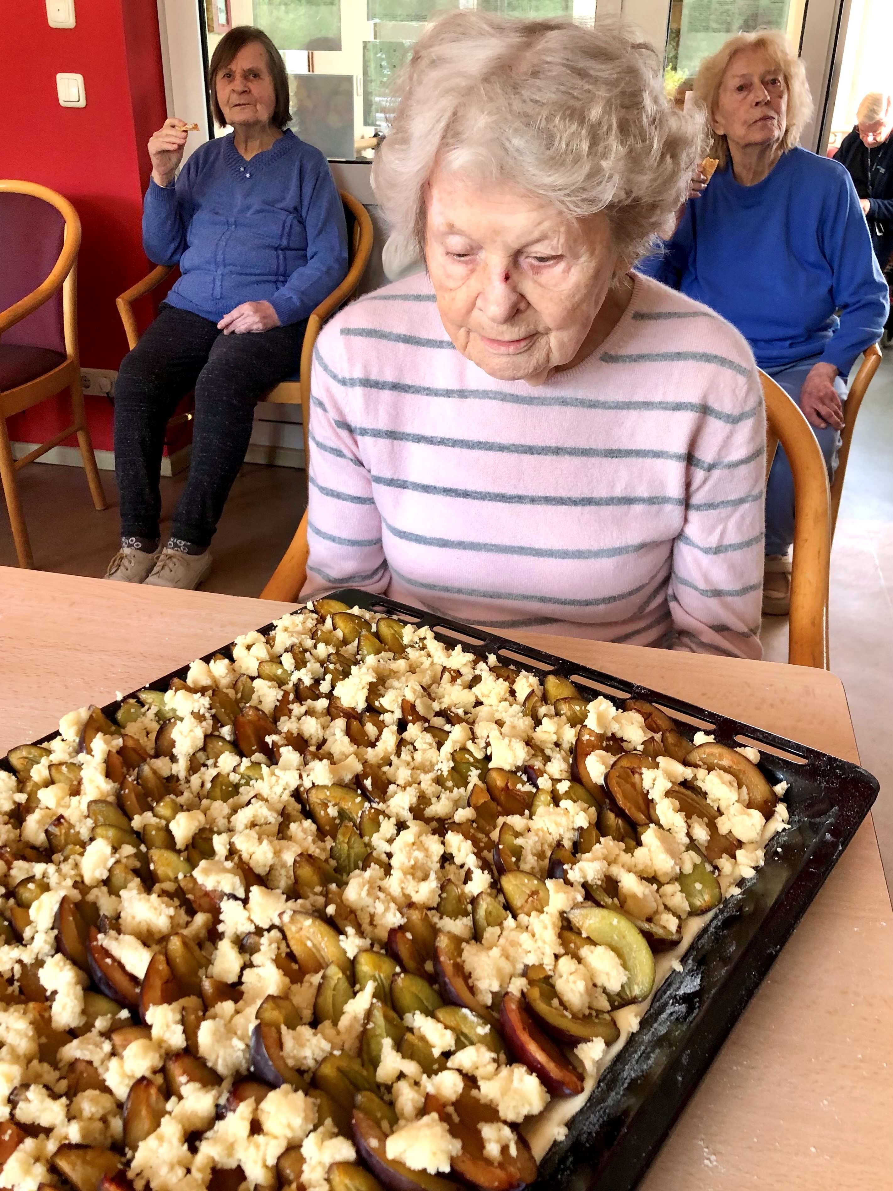 Das ließen sich die Bewohnerinnen und Bewohner im Haus Horeb in Teltow nicht zweimal sagen. Zusammen mit den Mitarbeitenden haben sie köstlichen Pflaumenkuchen gebacken und wer mochte konnte auch frische Waffeln genießen.