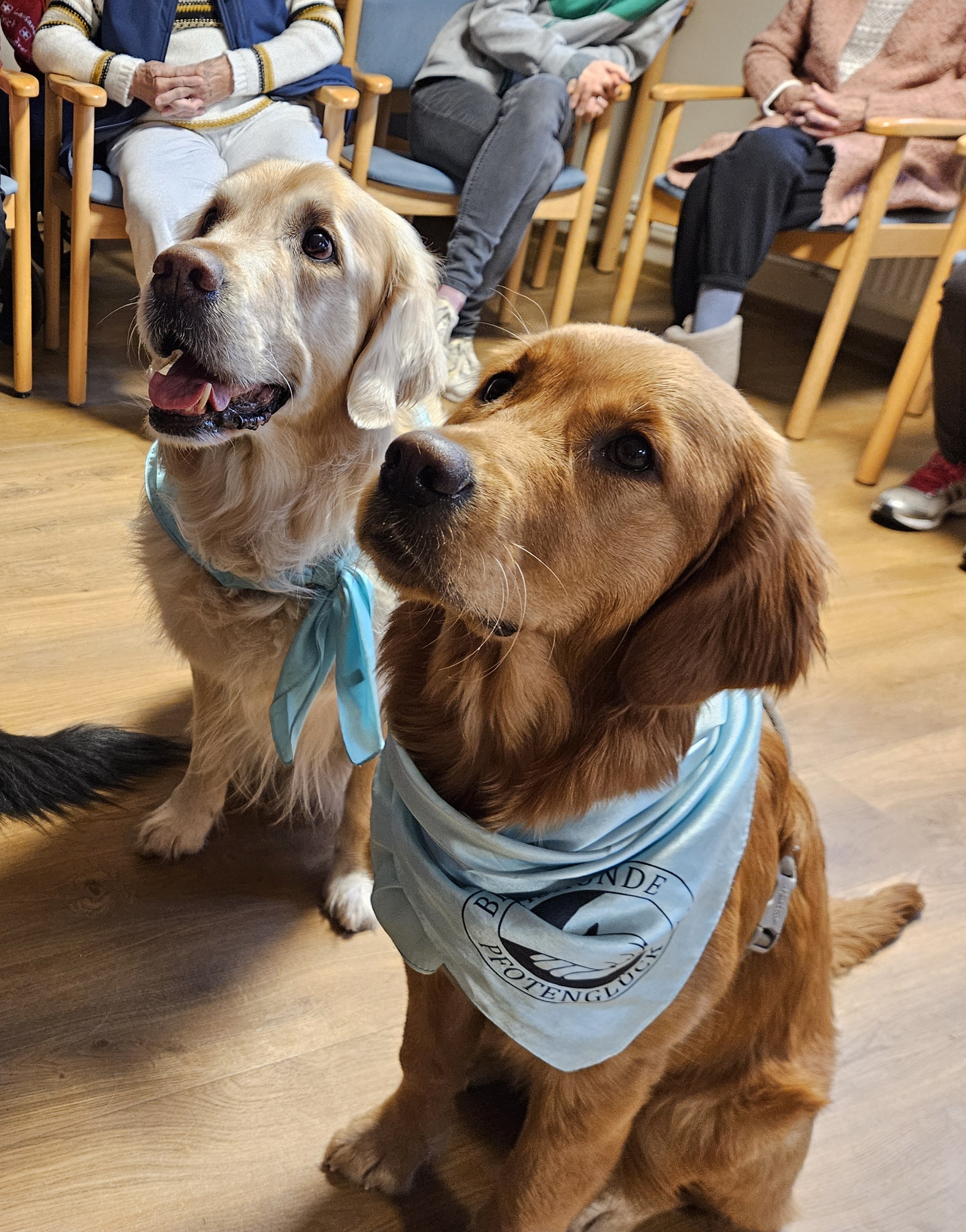 Freddy und Quinn kommen jetzt öfter vorbei, wir freuen uns! Die zwei ausgebildeten Besuchshunde des Vereins Besuchshunde Pfotenglück e. V. werden künftig regelmäßig unsere Einrichtung besuchen.