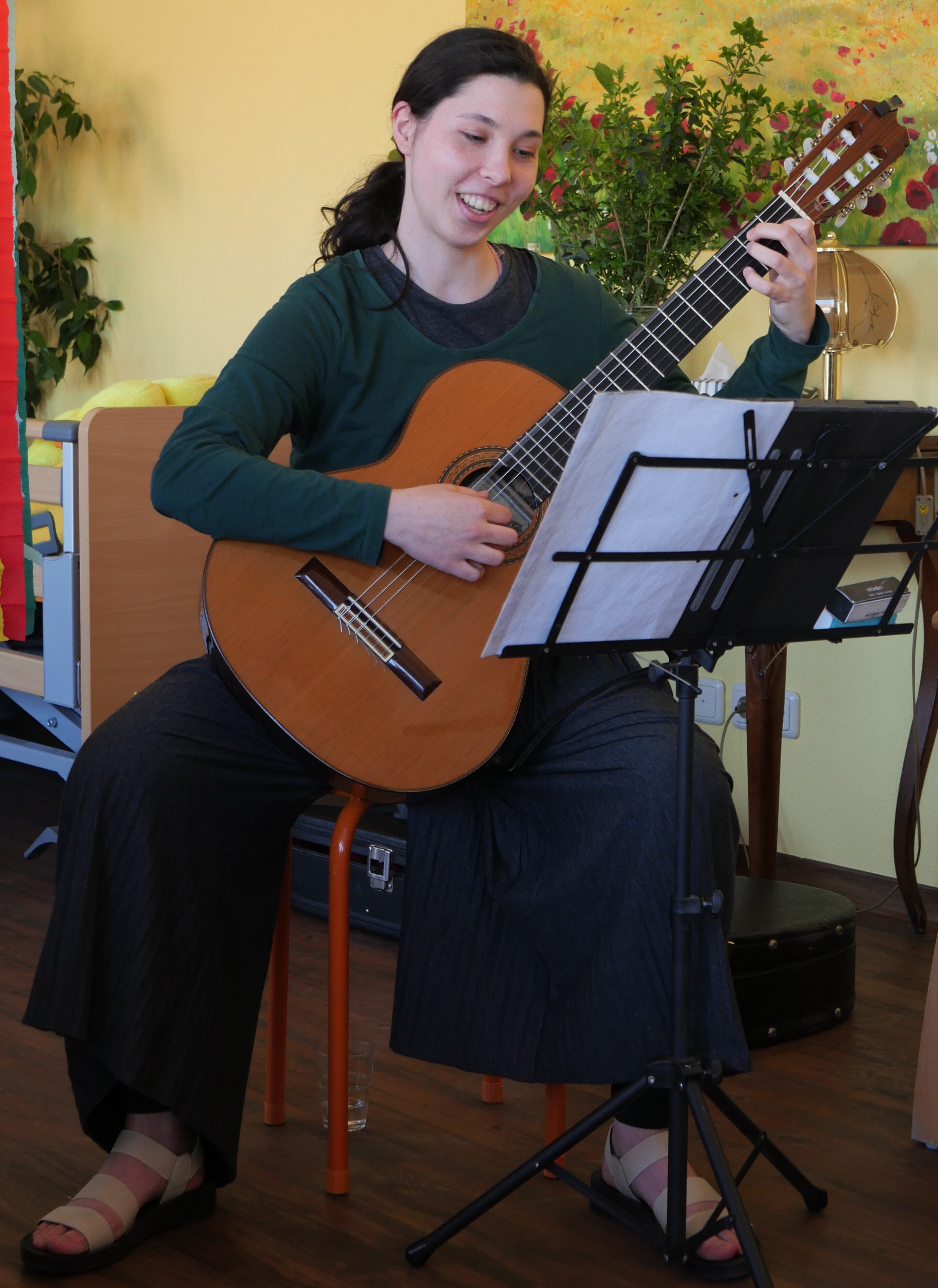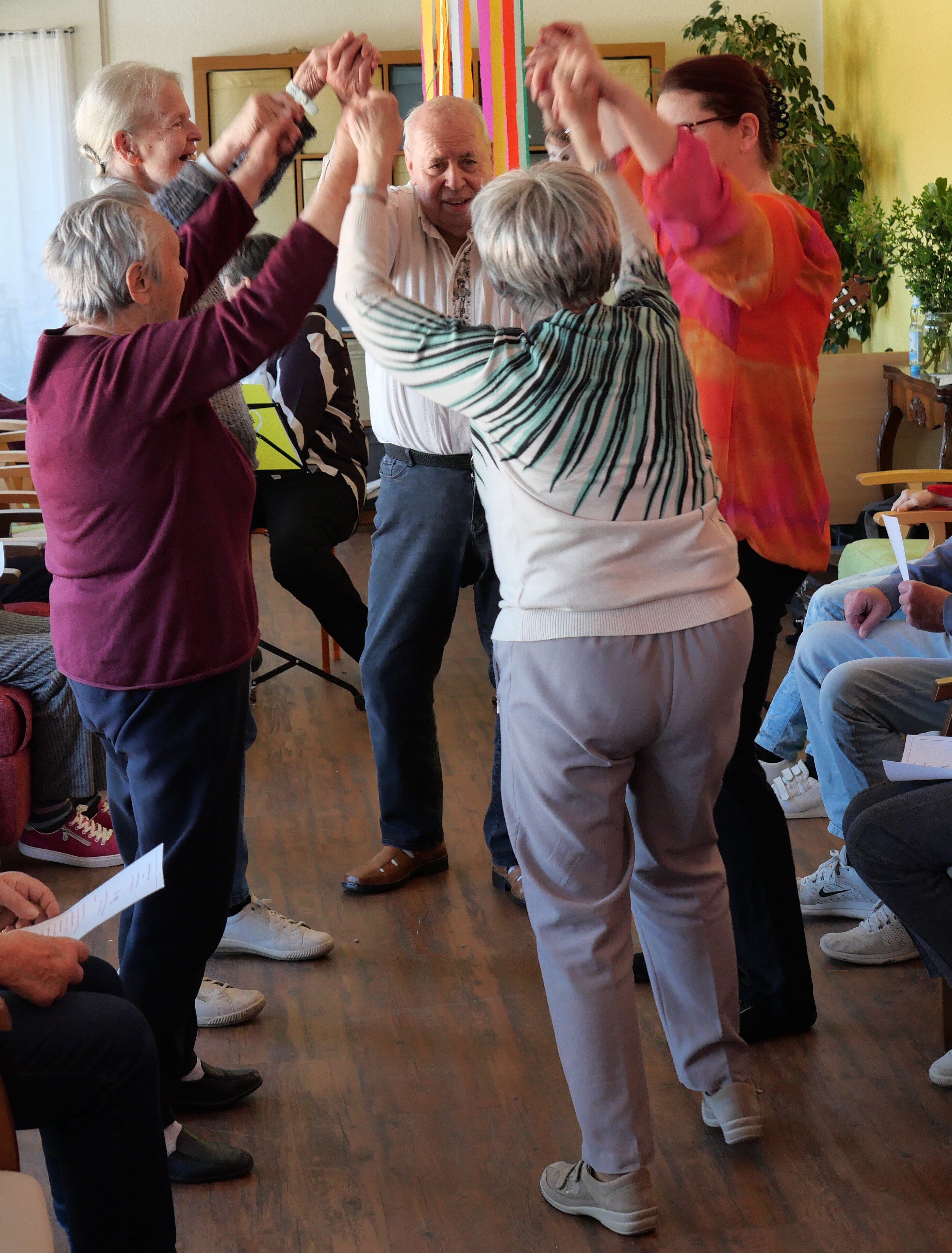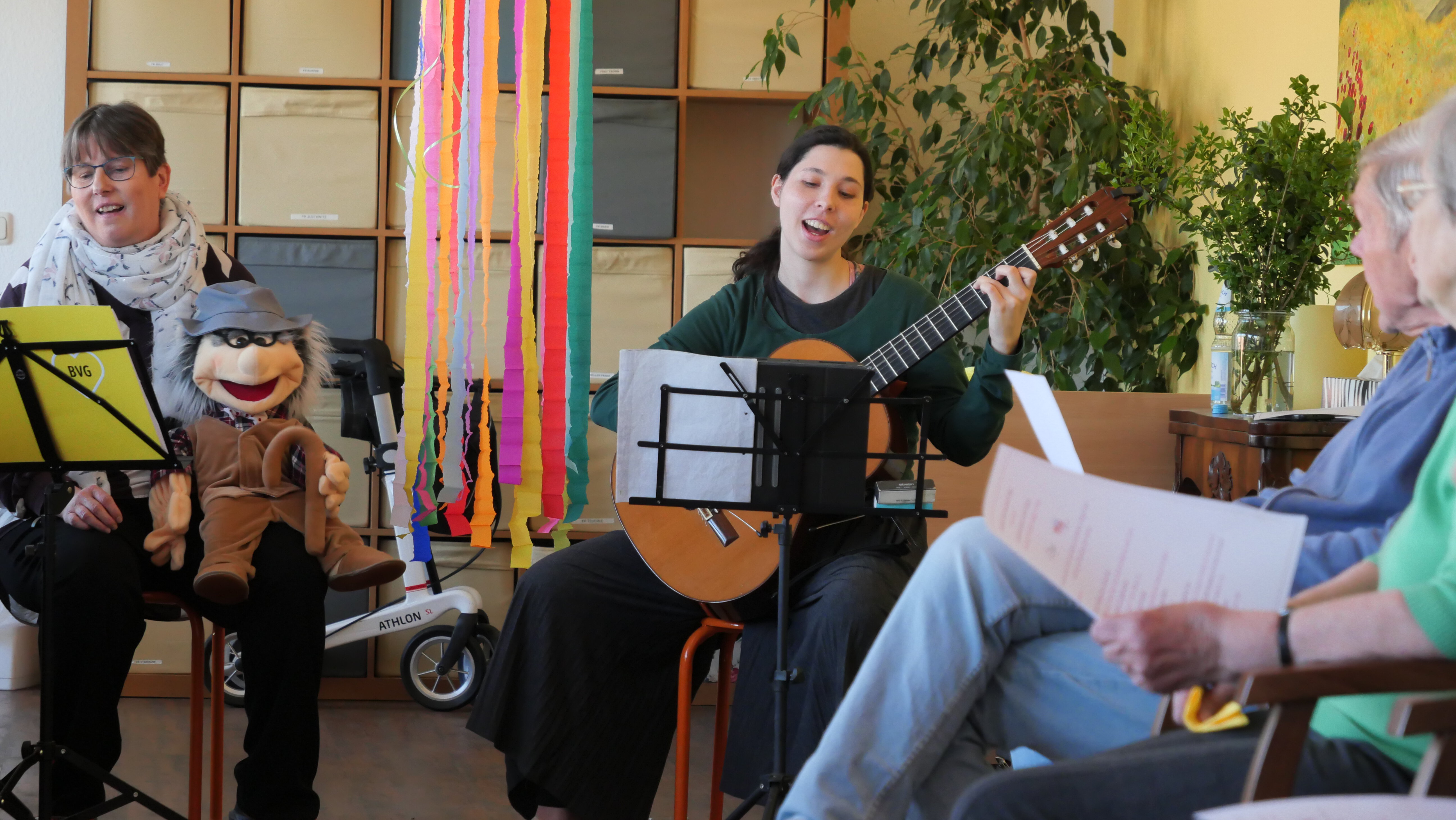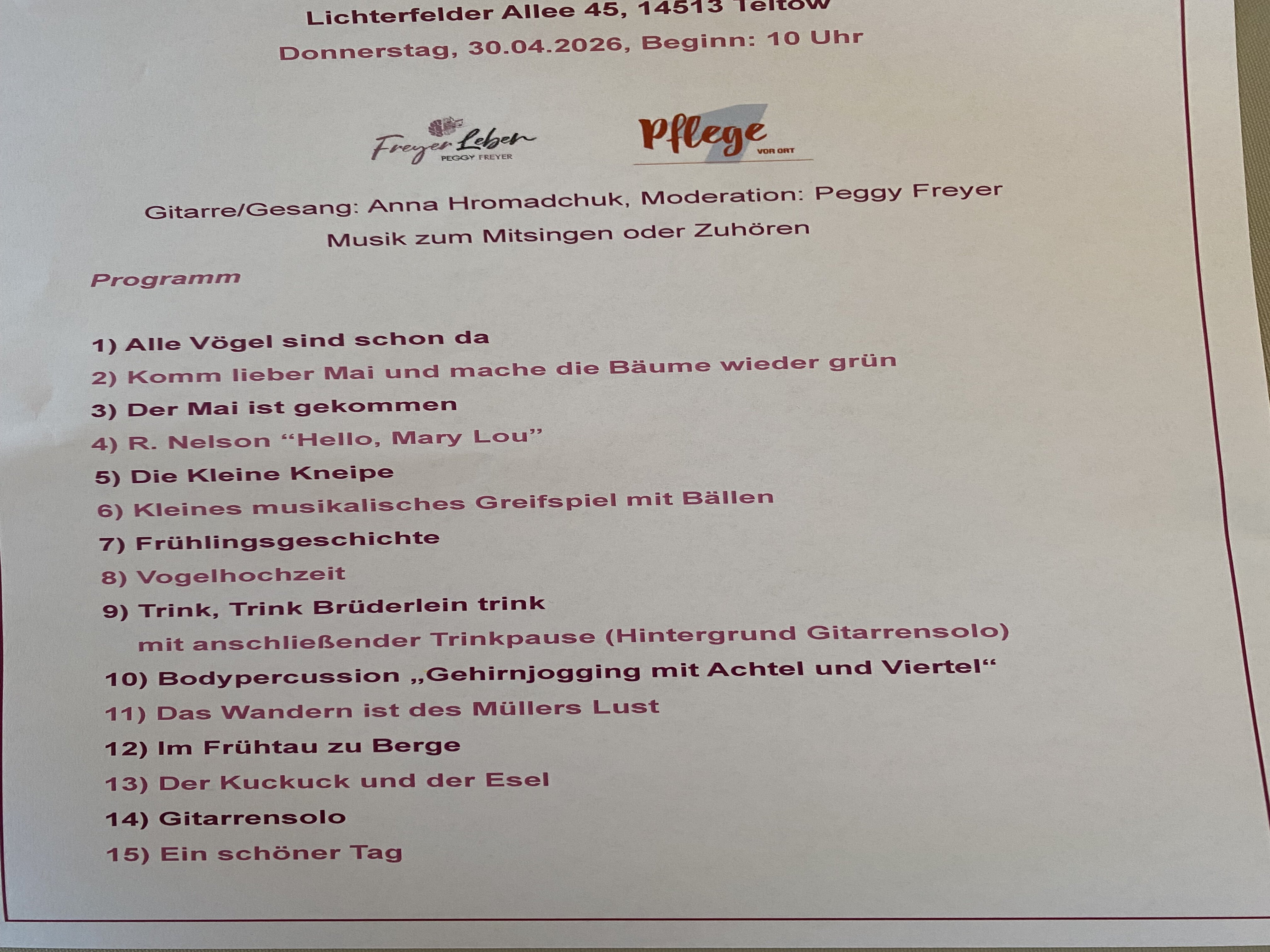 Zuerst gab es ein buntes Programm mit Frühlingsliedern, Bewegungsspielen, Tanz und toller Gitarrenmusik in den Pausen. Die „Praxis Freyer Leben“ aus Teltow hatte ihre Erfahrung in den abwechslungsreichen Vormittag einfließen lassen. Peggy Freier moderierte, Gitarre und Gesang kamen von der tollen Musikerin Anna Hromadchuk.