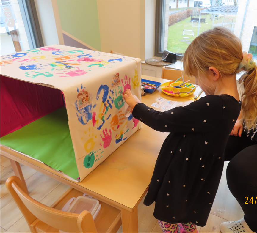 Damit die Kinder verstehen, wie eine Wahl funktioniert, haben wir gemeinsam eine Wahlkabine aus einem Karton gebastelt.
