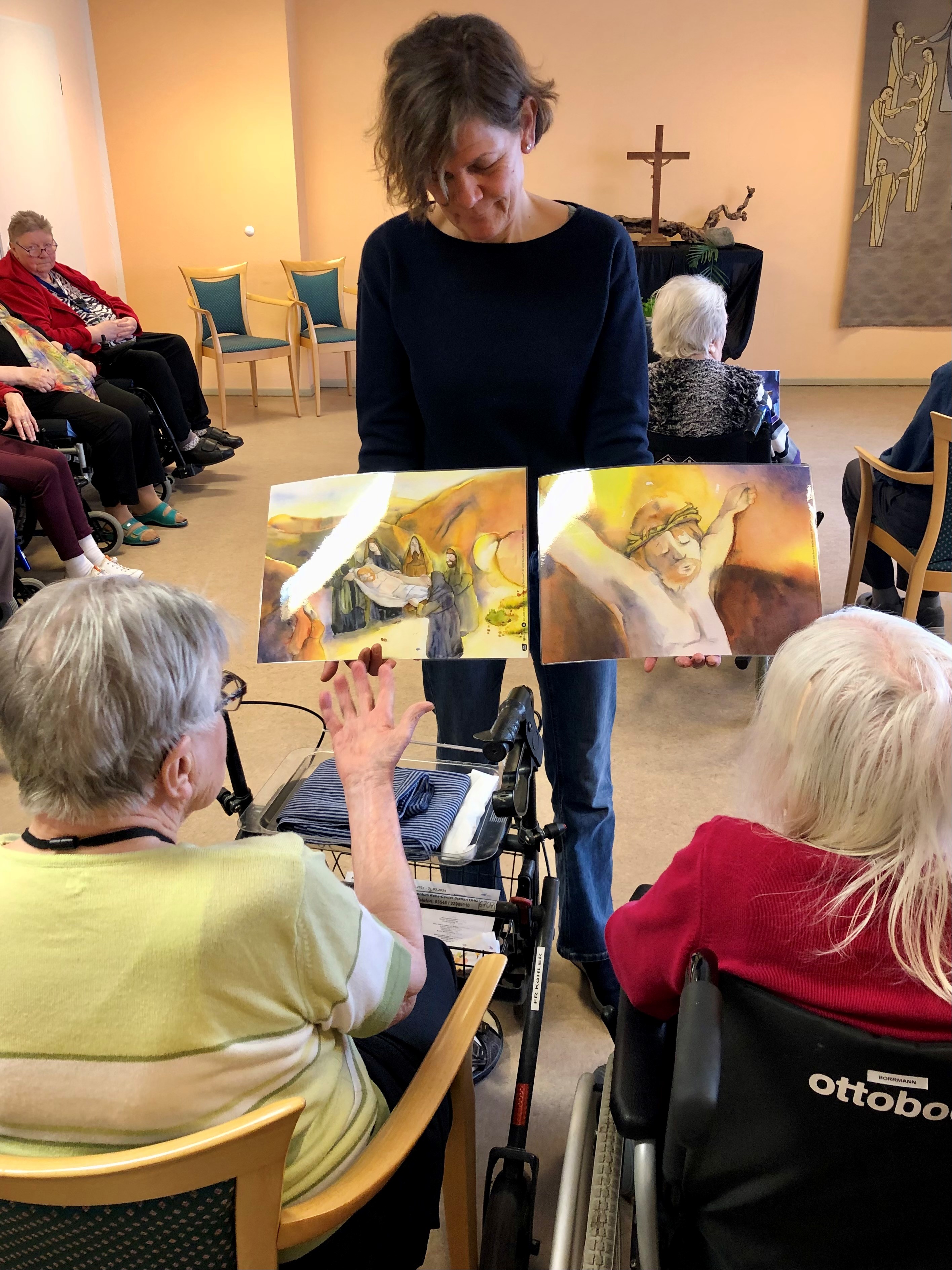 Die Bewohnerinnen und Bewohner unserer Altenhilfeeinrichtung Haus Horeb in Teltow befassten sich in der Karwoche mittels Bilder, verschiedener Texte und Musik mit dem Kreuzweg Jesus. Die Auseinandersetzung mit dem Thema sorgte für einen abwechslungsreichen und auch bewegenden Tag.