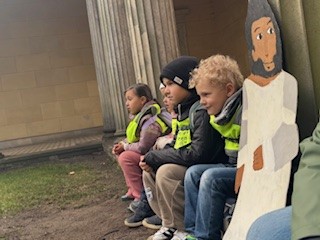 Am 1. April unternahmen wir gemeinsam mit unseren Vorschulkindern aus unserem Evangelischen Kindergarten Arche Noah in Caputh einen besonderen Ausflug: den Kita-Kreuzweg in der Friedenskirche in Potsdam. Bereits die Anreise war für die Kinder ein spannender Teil des Erlebnisses. Mit dem Bus fuhren wir gemeinsam los, bevor wir das letzte Stück zu Fuß bis zur Kirche zurücklegten.