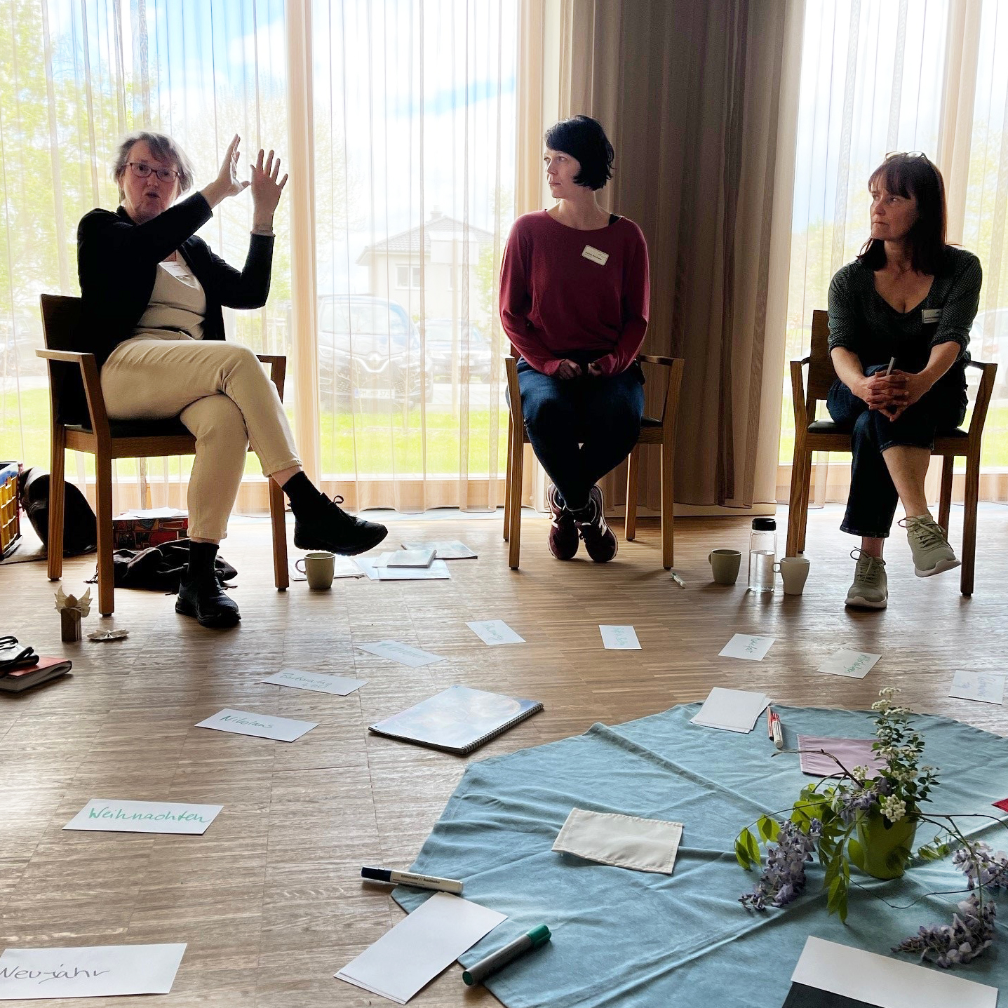 Am 18. April 2024 versammelten sich Kolleginnen aus allen Einrichtungen des Altenhilfezentrums in Berlin-Mahlsdorf, um das Kirchenjahr lebendig zu gestalten. In einer kreativen und gemeinschaftlichen Atmosphäre trugen sie kirchliche Feiertage zusammen, erfuhren viel über deren Geschichte und entwickelten viele Ideen, wie die Feiertage und kirchliche Anlässe künftig noch besser in den Betreuungsalltag integriert und sichtbar gemacht werden können. Zum Schluss gestalteten alle gemeinsam einen beeindruckenden Pfingst-Jahreszeitentisch. Vielen Dank an alle Beteiligten für diese bereichernde und fröhliche Fortbildung, die allen große Freude bereitete.
