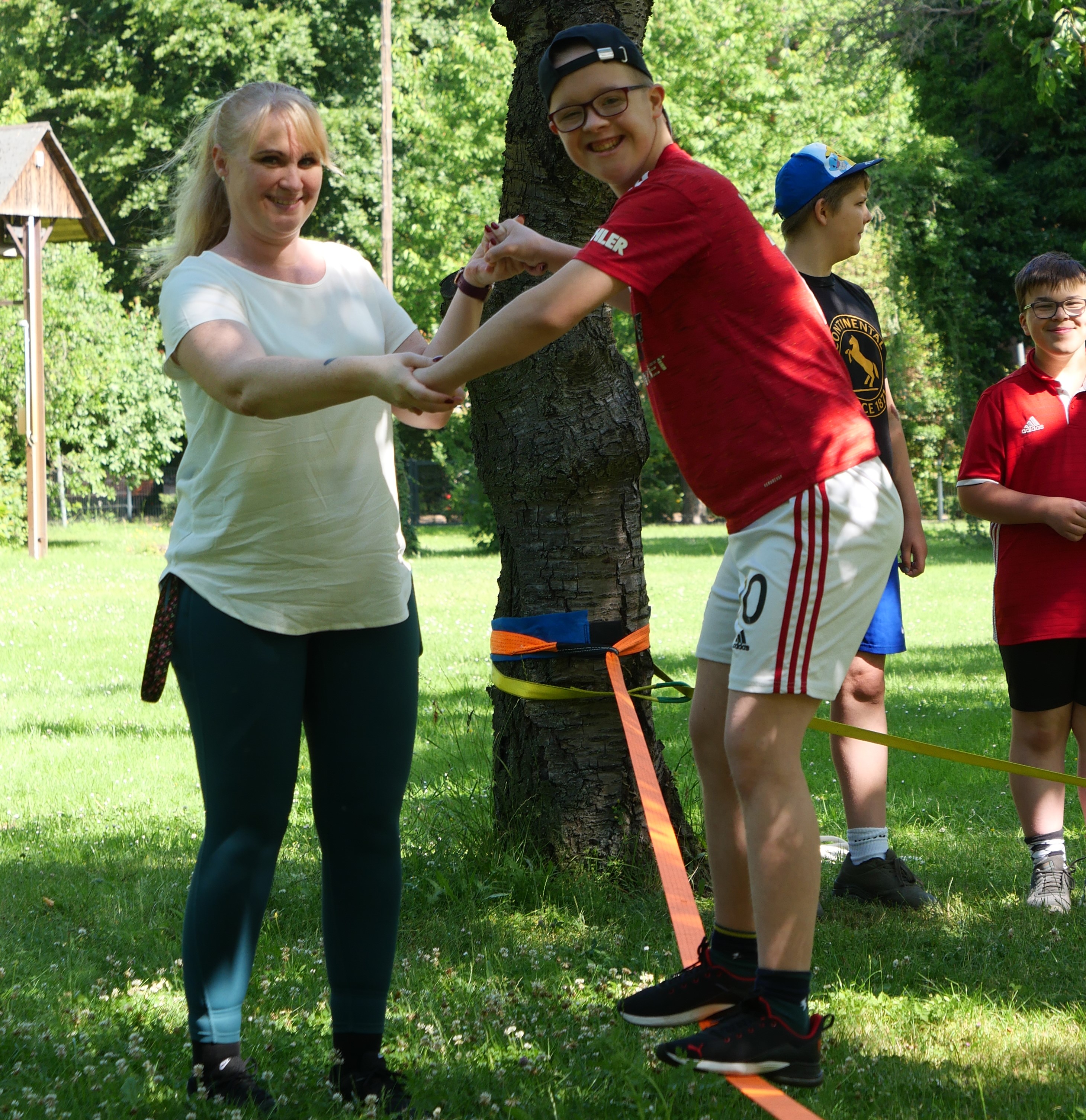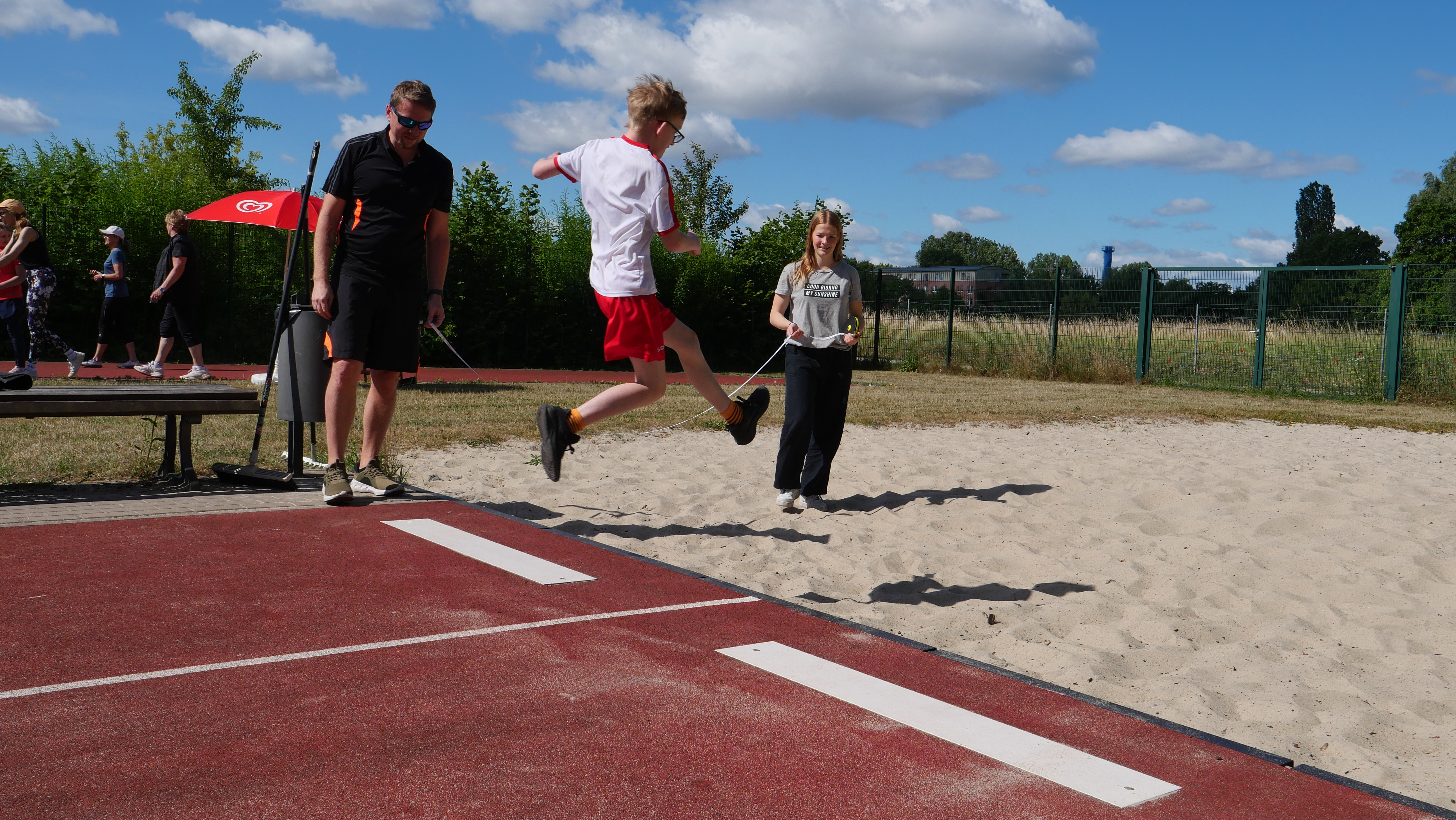 Die Schülerinnen und Schüler der Hans-Christian-Andersen-Schule in Teltow haben diese Woche an zwei Tagen gezeigt, was in ihnen steckt. Beim Sportfest der Schule auf dem Campus des Diakonissenhauses Teltow konnten sie sich zunächst in den klassischen Sportdisziplinen 50- Meter-Lauf, Weitspringen und Weitwerfen messen. Doch das war nicht alles: Denn darüber hinaus gab es Wettbewerbe wie Dosenwerfen, Zielwerfen und Hindernisfahren. Und sie konnten ausprobieren, wie es sich anfühlt, auf einer Slackline zu stehen – das ist nämlich gar nicht so einfach!