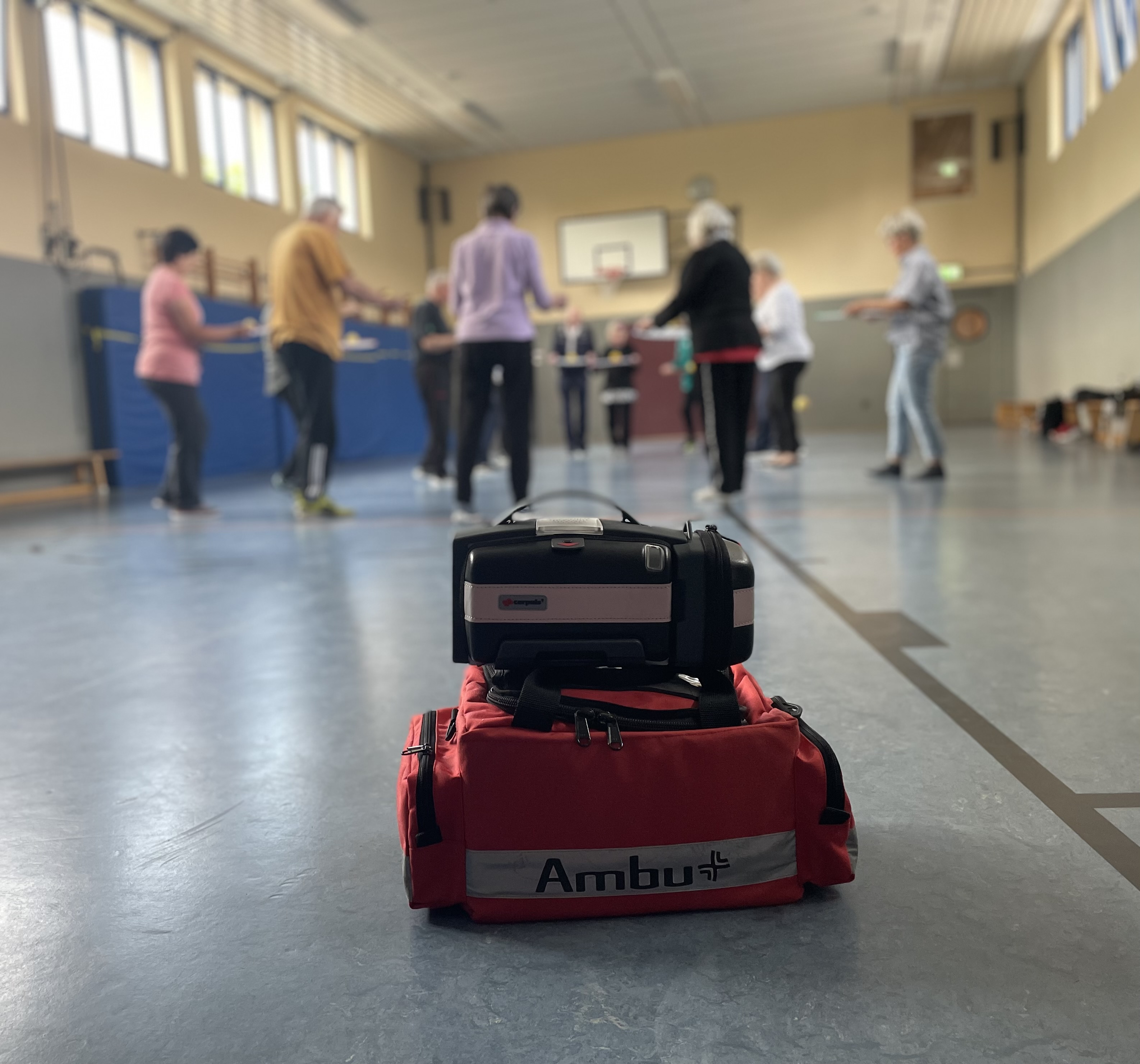 Der Koffer enthält alles, was im Ernstfall zählt: automatisierter, externer Defibrillator (AED), Notfallmedikamente & Erste-Hilfe-Materialien – ganz nach den Empfehlungen der Deutschen Gesellschaft für Prävention und Rehabilitation von Herz-Kreislauferkrankungen.