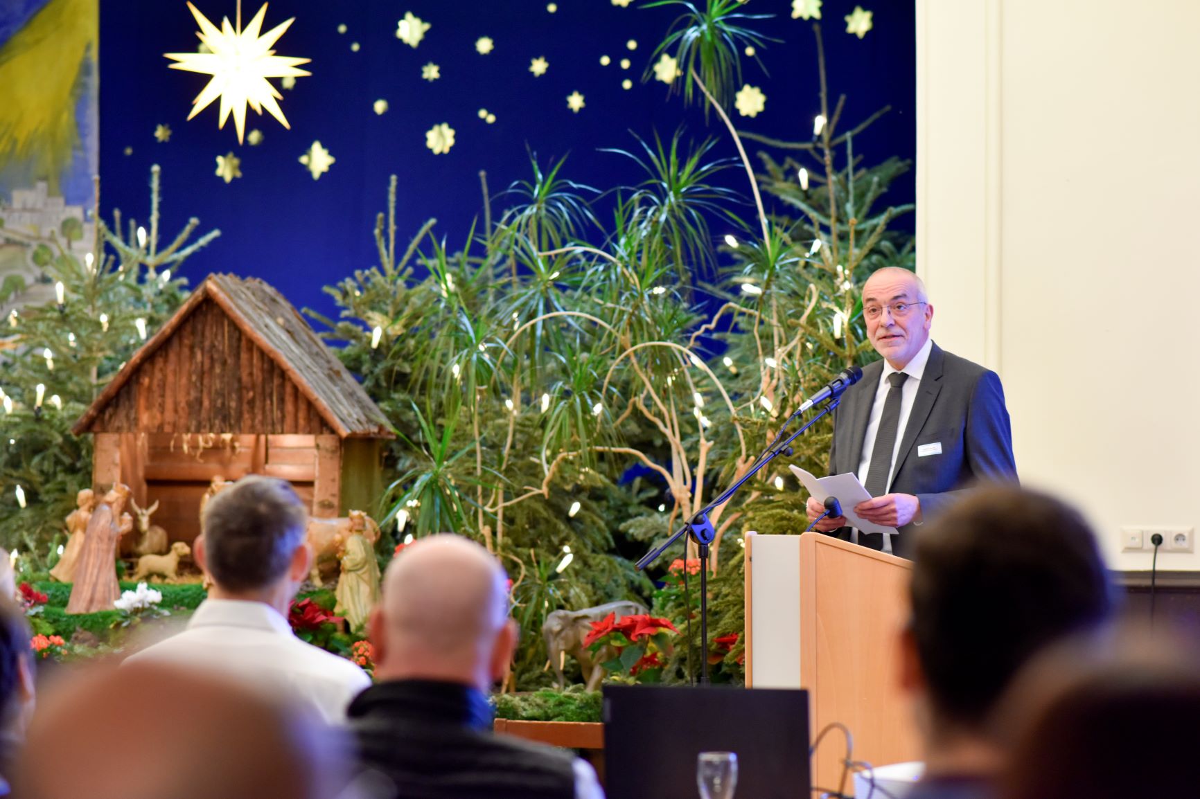 Am Mittwoch, den 7. Januar 2026, luden die Einrichtungen des Diakoniewerk Halle zum Neujahrsempfang ein. Etwa siebzig Gäste aus Gesundheits- und Sozialwesen, Kirche und Diakonie sowie Politik und Stadtverwaltung waren anwesend als an der noch ausgetsellten Krippe über das Jahr 2025 im Unternehmensverbund reflektiert und über anstehende Projekte 2026 berichtet wurde. Als Grußwortrednerin war die Voständin der Diakonie Mitteldeutschland, Martina von Witten, anwesend und würdigte die Entwicklung des Unternehmensverbundes in den vergangenen Monaten.