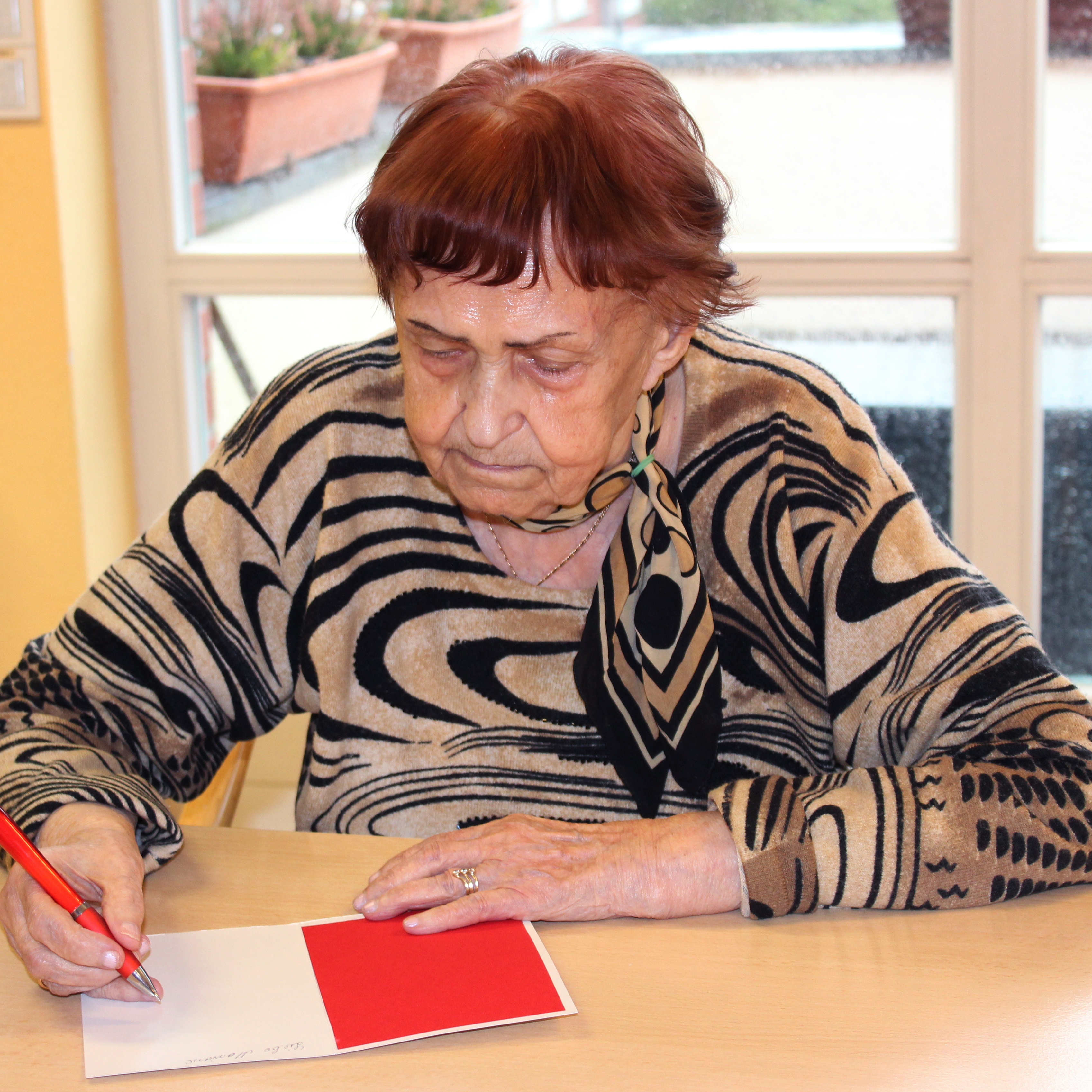 Mit viel Freude und Elan verfassten Bewohnerinnen und Bewohner auf selbst gebastelten Karten österliche Grüße für Familie und Freunde.