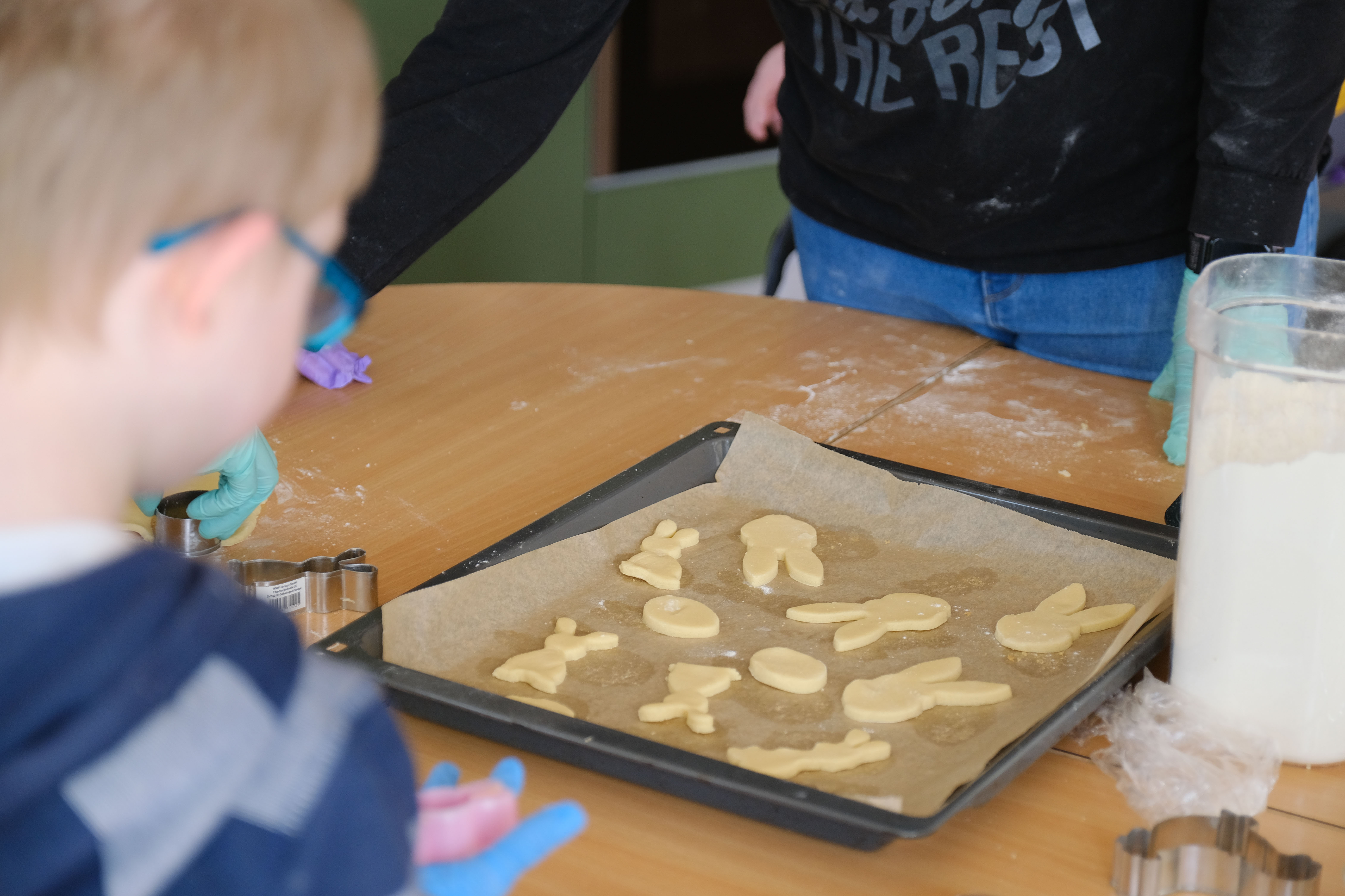 Der süße, liebliche Duft der Osterplätzchen lud die Kinder und Jugendlichen nicht nur zum Naschen ein, sondern half auch die lange Wartezeit zu überbrücken, die der Teig für den Hefezopf zum Gehen brauchte.