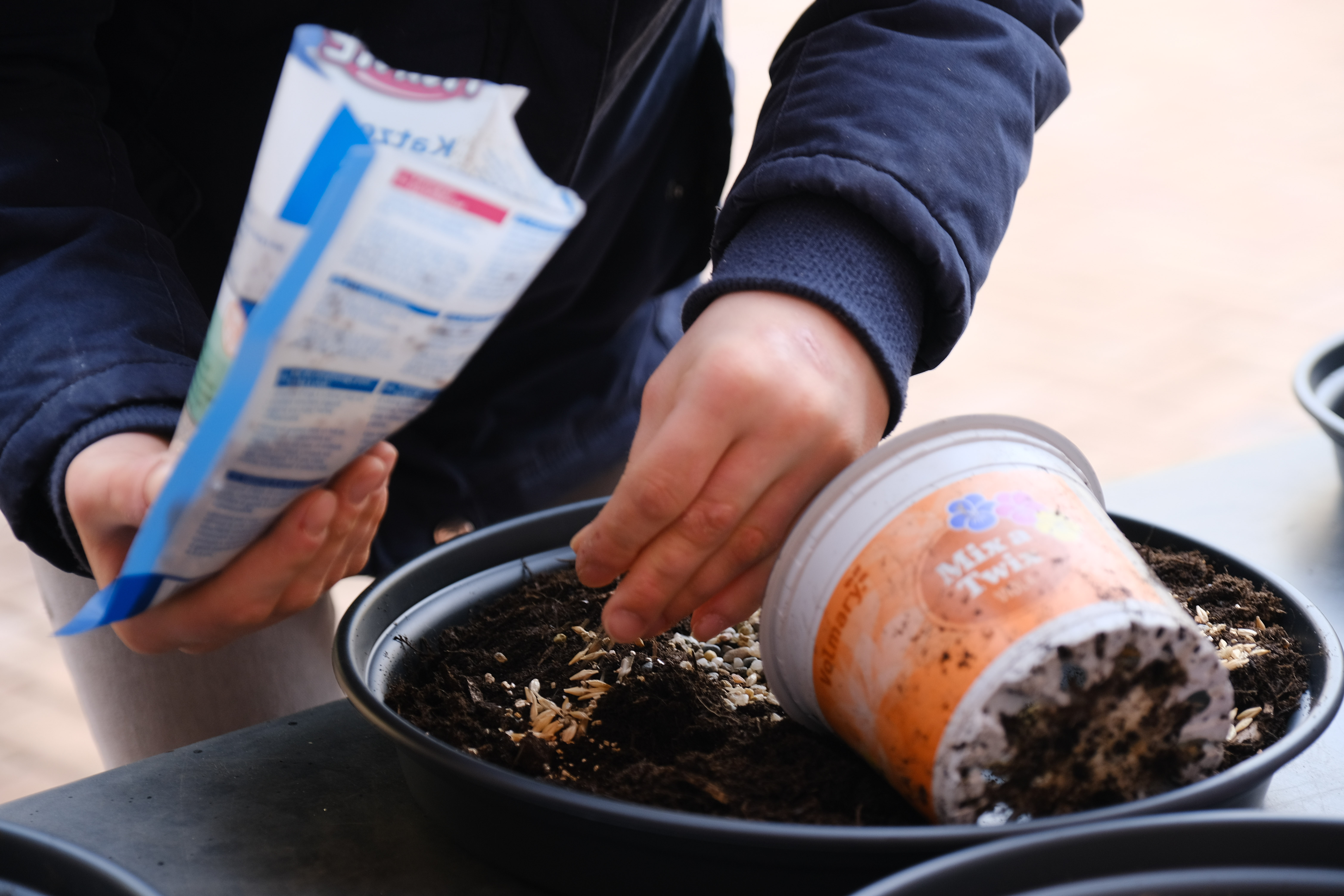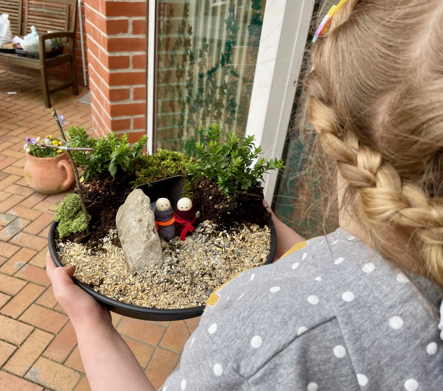 Wer Lust hatte, konnte bei bestem Frühlingswetter kleine Ostergärten aus Moos, Steinen und Blumen gestalten.