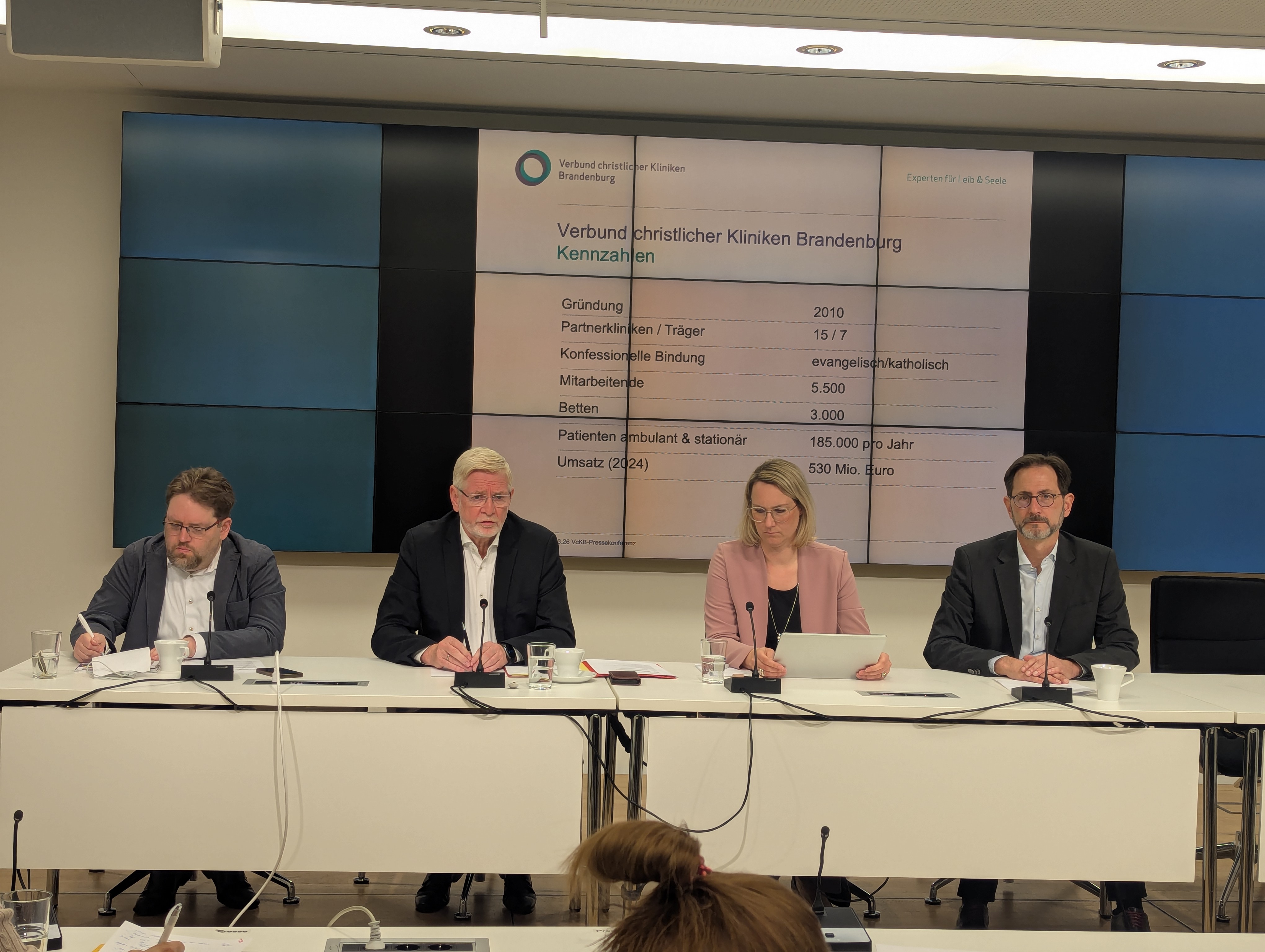 Etwas mehr als ein Jahr nach Inkrafttreten des Krankenhausversorgungsverbesserungsgesetzes (KHVVG) stellten sich Vertreter des Verbundes christlicher Kliniken Brandenburg VcKB am 23. März 2026 den in der Landespresskonferenz den Fragen von Journalistinnen und Journalisten.