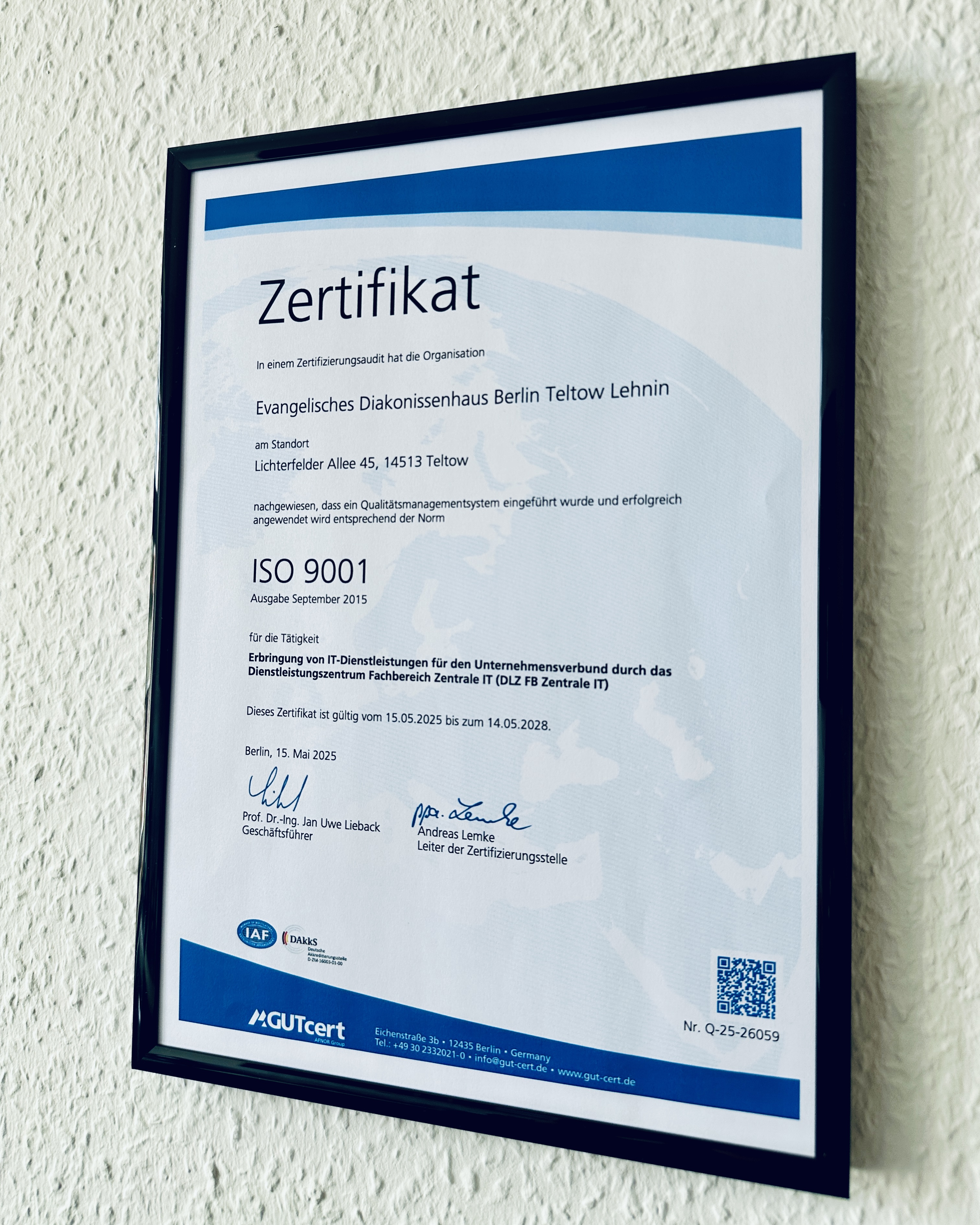 Unsere Zentrale-IT ist nun nach ISO 9001 zertifiziert – ein international anerkannter Standard für Qualitätsmanagement. Ein großer Schritt für unsere interne IT – und ein starkes Signal für Verlässlichkeit und Professionalität!