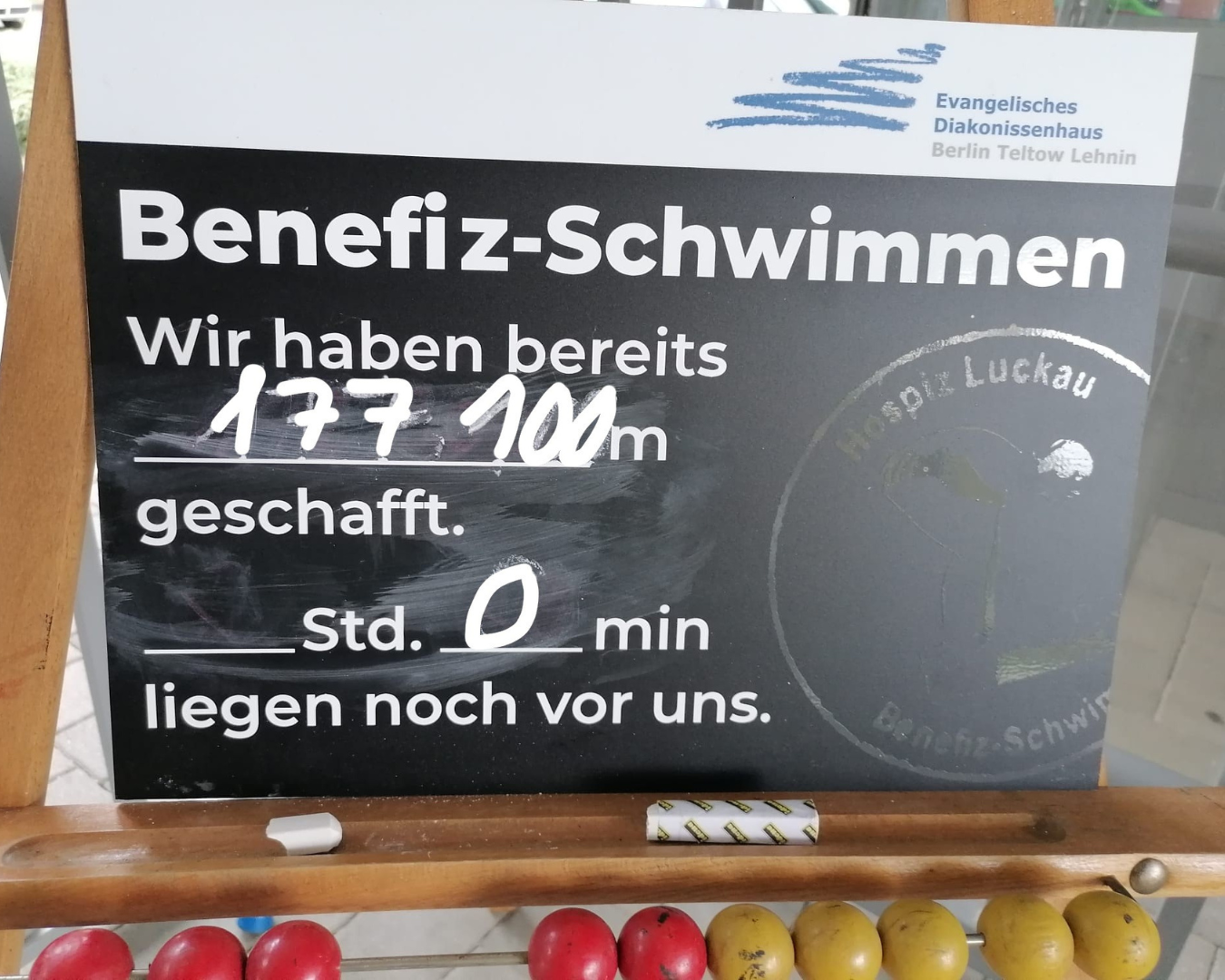 Am 25. August fand im Freibad Luckau ein Benefizschwimmen für unser Hospiz Luckau statt. Es galt 100.000 m zu schwimmen, damit die 16 Sponsoren einen Betrag von 4930,-€ für die Hospizarbeit in Luckau spenden. Zusammen schafften es die 160 Teilnehmenden innerhalb von vier Stunden sogar unglaubliche 177.100 m zu schwimmen.