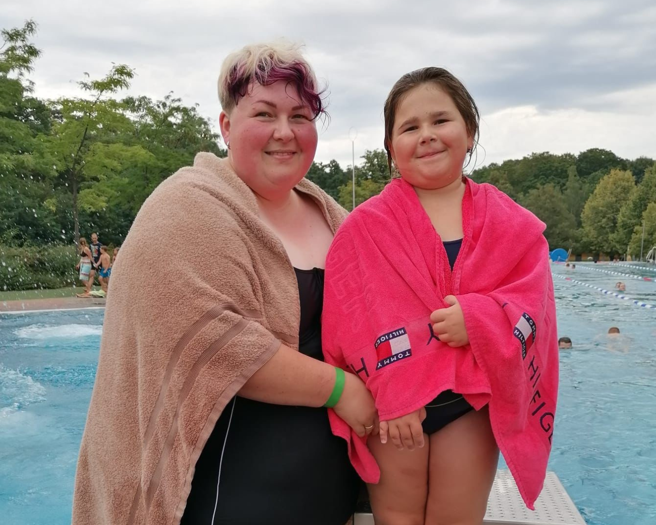 Es gab viele herzliche Momente, Gespräche und Begegnungen am Beckenrand. Wie beispielsweise mit 3 Enkelkindern und ihrer Oma, deren Opa bzw. Ehemann 2021 im Hospiz verstorben ist. Unser Seelsorger Johannes Lorenz ist 30 Bahnen geschwommen. Mitarbeitende Maria Kobelt konnte 43 Bahnen auf dem Hospizkonto verbuchen und ist somit für die Kollegen und Kolleginnen geschwommen, die im Spätdienst waren und nicht Dabeisein konnten. Schwimmer Andre ist 1,5 Stunden am Stück geschwommen. Eine weitere Schwimmerin hatte einen persönlichen Bezug zum Hospiz, da sie selbst schwer erkrankt ist. Sie schwamm mit dem Gedanken irgendwann ebenfalls im Hospiz einziehen zu müssen. Hauptamtsleiterin Birgit Lehmann ist mit 30 Bahnen so viel wie noch nie in ihrem Leben geschwommen, wie sie uns berichtete. Frieda wurde mit 7 Jahren die jüngste Teilnehmerin des Benefizschwimmens. Als Dankeschön für ihre Teilnahme gab es einen frisch gepflückten, bunten Blumenstrauß aus einem Luckauer Garten. Sie hat das Seepferdchen und ist 26 Bahnen geschwommen. Eine schwangere Schwimmerin berichtete, dass Baby Lea Ende 2023 geboren wird. Eine Besonderheit gab es in diesem Jahr auch noch. Erstmalig schloss sich das Freibad Dahme dem Benefizschwimmen an und unterstützte die Veranstaltung mit weiteren 168.475 geschwommenen Metern und gesammelten Spendengeldern, sodass die Spendensumme auf 6.000€ aufgefüllt werden konnte. Die Schwimmerinnen und Schwimmer in Dahme waren begeistert davon, dass sie das Benefizschwimmen von Dahme aus unterstützen konnten. Wir bedanken uns sehr herzlich bei Rock & Rhythmen gegen Krebs, die die Unterstützung in Dahme ermöglicht haben.