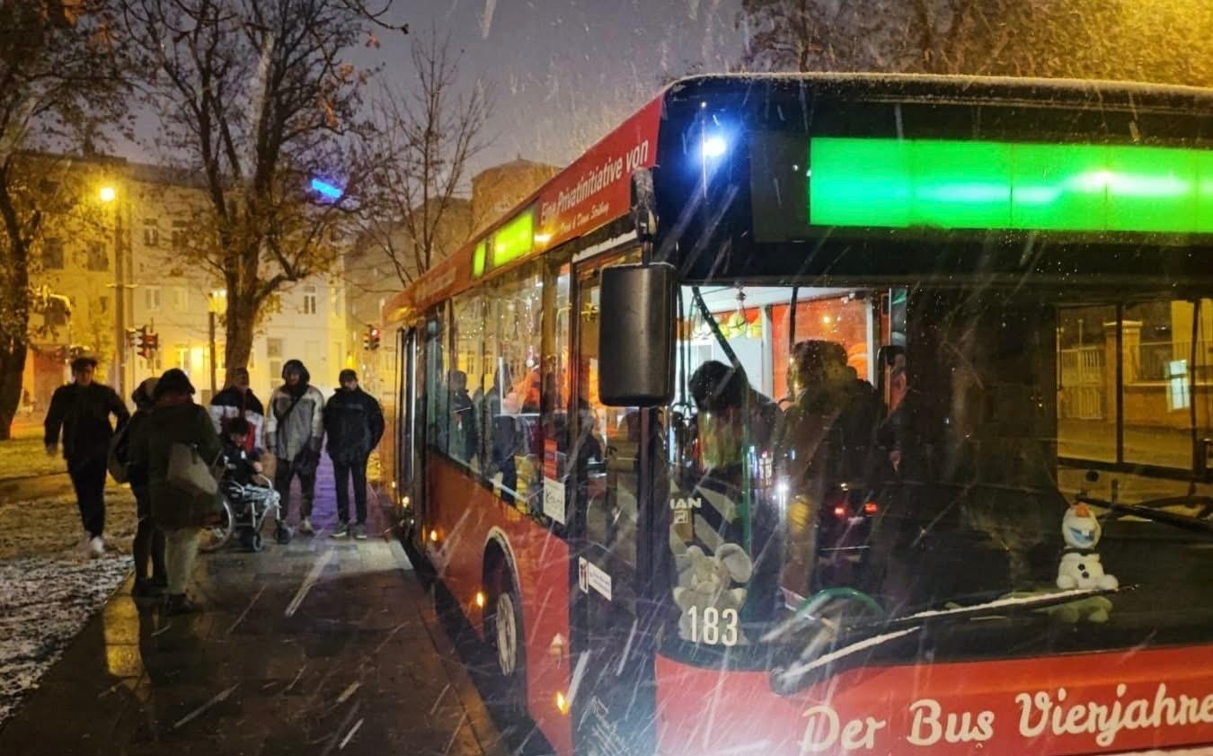 Am Freitag, den 12. Dezember 2025, erhielt der "Bus Vierjahreszeiten" eine Spende aus dem Bethcke-Lehmann-Haus im Diakoniewerk Halle. Hannelore Rösler und Roswitha Gödicke aus der Einrichtung übergaben zusammen mit Leiterin Kerstin Conrad einen Karton voll liebevoll selbstgestrickter Schals und Mützen. Diese sind für Menschen in Not.