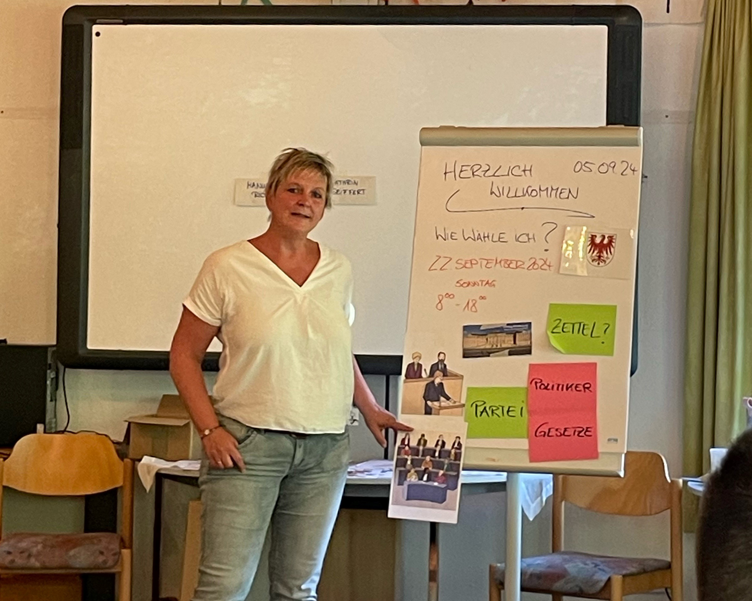Gestern gab es eine Veranstaltung für die Bewohnerinnen und Bewohner der Wohnstätten und Werkstätten in Teltow. Dort leben und arbeiten Menschen mit Behinderung. Bei der Veranstaltung ging es um das Thema „Wie wähle ich?“. Ziel der Veranstaltung war es, den Menschen das Thema Wahlen zu erklären. Außerdem sollte ihnen geholfen werden, sich gut auf die Wahlen in Brandenburg vorzubereiten. Die Lebenshilfe hat diese Veranstaltung organisiert. Die Leute bekamen wichtige Informationen darüber, wie eine Wahl abläuft und worauf sie achten sollten. Die Veranstaltung war wichtig, damit alle mitmachen und mitbestimmen können.