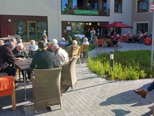 Unter einer strahlenden Herbstsonne feierte das Altenhilfezentrum Mahlsdorf am 6. Oktober sein Erntedankfest, zu dem mehr als 80 Gäste gekommen waren. Es begann mit einem Gottesdienst, bei dem auch Mitarbeitende des Altenhilfezentrums mitwirkten, anschließend genossen alle das schöne Wetter bei Musik und Grillwurst.