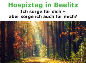 Im Rahmen der Brandenburgischen Hospizwoche findet am Samstag, 1. Juli 2023 | 14 - 18 Uhr in der Stadtpfarrkirche St. Marien und St. Nikolai Beelitz eine Veranstaltung zum Thema "Ich sorge für dich - aber sorge ich auch für mich" statt. Gastgeber ist unser Ambulanter Hospiz- und Palliativdienstes Potsdam-Mittelmark Das Programm: 14.00 Uhr Begrüßung | Grußworte | Ehrung der Ehrenamtlichen 14.40 Uhr Impulsvortrag zum Thema Selbstfürsorge 15.00 Uhr Kaffeetrinken 15.30 Uhr Workshops:…