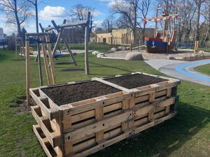 Gemeinsam mit unserem Hausmeister haben Erzieherinnen und Erzieher die Hochbeete geplant und gebaut. Herzlichen Dank geht auch an die Elternschaft für die tolle Unterstützung! Gepflanzt werden sollen Tomaten, Erdbeeren und Kräuter .