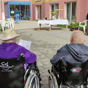 In unserem Seniorenzentrum Negendanksland in Beelitz hielten am 9. April 2024 die Bewohnerinnen und Bewohner zusammen mit den Gästen der Tagesstätte einen Ostergottesdienst ab. Bei schönstem Wetter, umgeben von bunter Frühlingsblüte freuten sich alle über die schöne Zeit unter freiem Himmel.