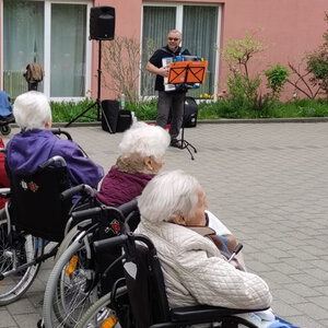 Am Freitag, den 12. April 2024, besuchte Jürgen Giese mit seinem Akkordeon unser Seniorenzentrum Negendanksland in Beelitz. Bei bestem Wetter und mit guter Laune sang er Lieder vom Frühling. Die Bewohner und Bewohnerinnen sowie die Gäste der Tagesstätte schunkelten mit und einige wagten ein kleines Tänzchen. Vielen Dank an alle Mitwirkenden, die diesen wunderschönen Vormittag ermöglicht haben.