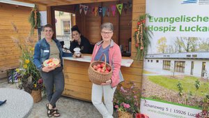 Am Sonntag ging es um die Knolle. Unser Team vom Evangelischen Hospiz Luckau war auf dem Marktplatz Luckau beim jährlichen Kartoffelbrunch dabei. Alle 15 Kartoffelquiches wurden verkauft. Der Erlös kommt der Hospizarbeit zugute. Das gesellige Beisammensein auf dem Marktplatz und die guten Gespräche haben alle genossen und der Kartoffelduft blieb noch lange in der Nase.