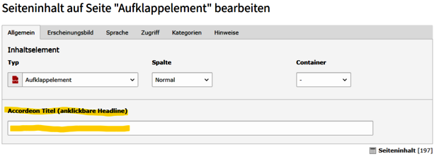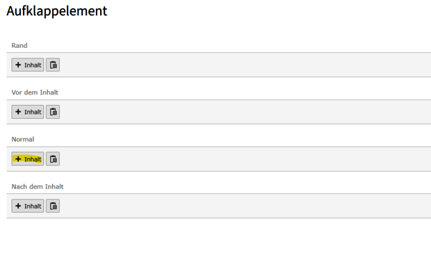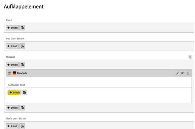 Im Aufklappelement neues Inhaltselement erstellen.