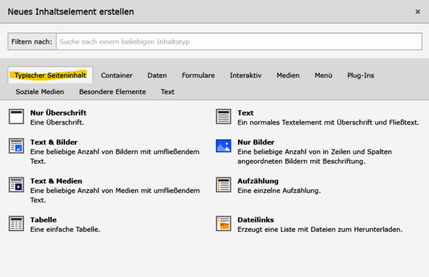 Neues Inhaltselement erstellen.