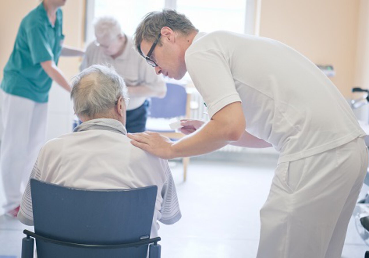 Die interdisziplinäre Arbeit in der Geriatrie ist aufwändig und anspruchsvoll, weil komplexe Krankheitsbilder und unterschiedliche Behinderungen bei vielfach gebrechlichen Patienten und Patientinnen umfangreiche Kenntnisse und Kreativität erfordern. Wir legen großen Wert auf Angehörigengespräche, die direkt bei Aufnahme standardmäßig vereinbart werden. Bei Bedarf bieten wir auch Angehörigenschulungen an, ermöglichen die gemeinsame Aufnahme in ein Zimmer oder geben Anleitung in Pflege und Therapie.