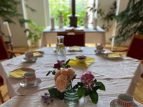 Das Evangelische Luise-Henrietten-Hospiz Lehnin lud am 14. Juni 2022 wieder zum gemeinschaftlichen Kaffeetrinken mit den Ehrenamtlern ein. Der künftige Ehrenamtskoordinator Dieter Großmann, selbst lange Ehrenamtlicher, hatte zusammen mit S. Carmen Streitz und Hauswirtschaftskraft Nadine Köpper die Tafel liebevoll vorbereitet. Ebenfalls dabei waren Seelsorger Pfarrer Friedrich Demke und eine neue künftige Ehrenamtliche. Es wurden zwei wunderbare Stunden mit guten Gesprächen, die Lust auf mehr machten!