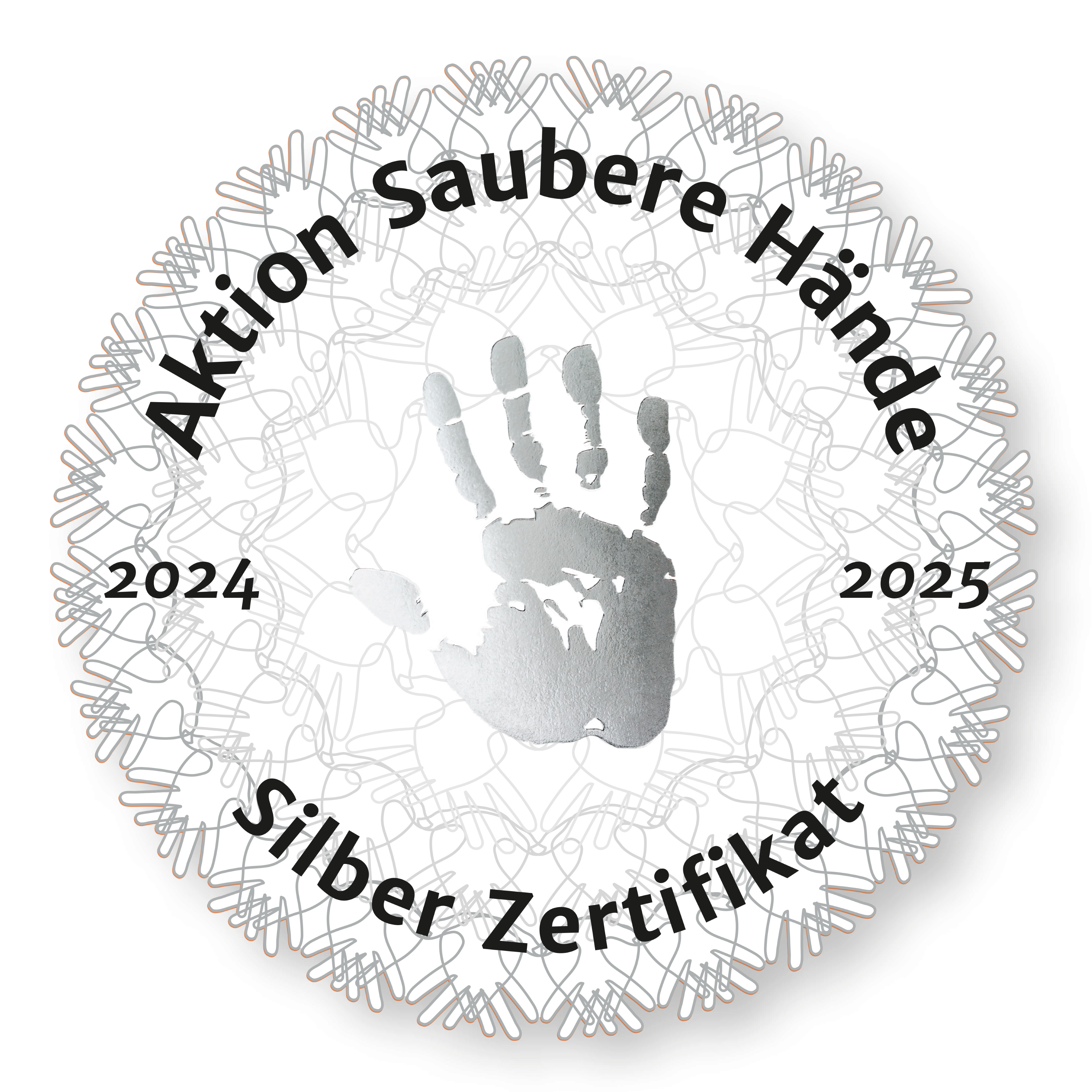 Für diese Leistung wurde unser Evangelisches Krankenhaus Luckau mit dem Silberzertifikat der „Aktion Saubere Hände“ ausgezeichnet.