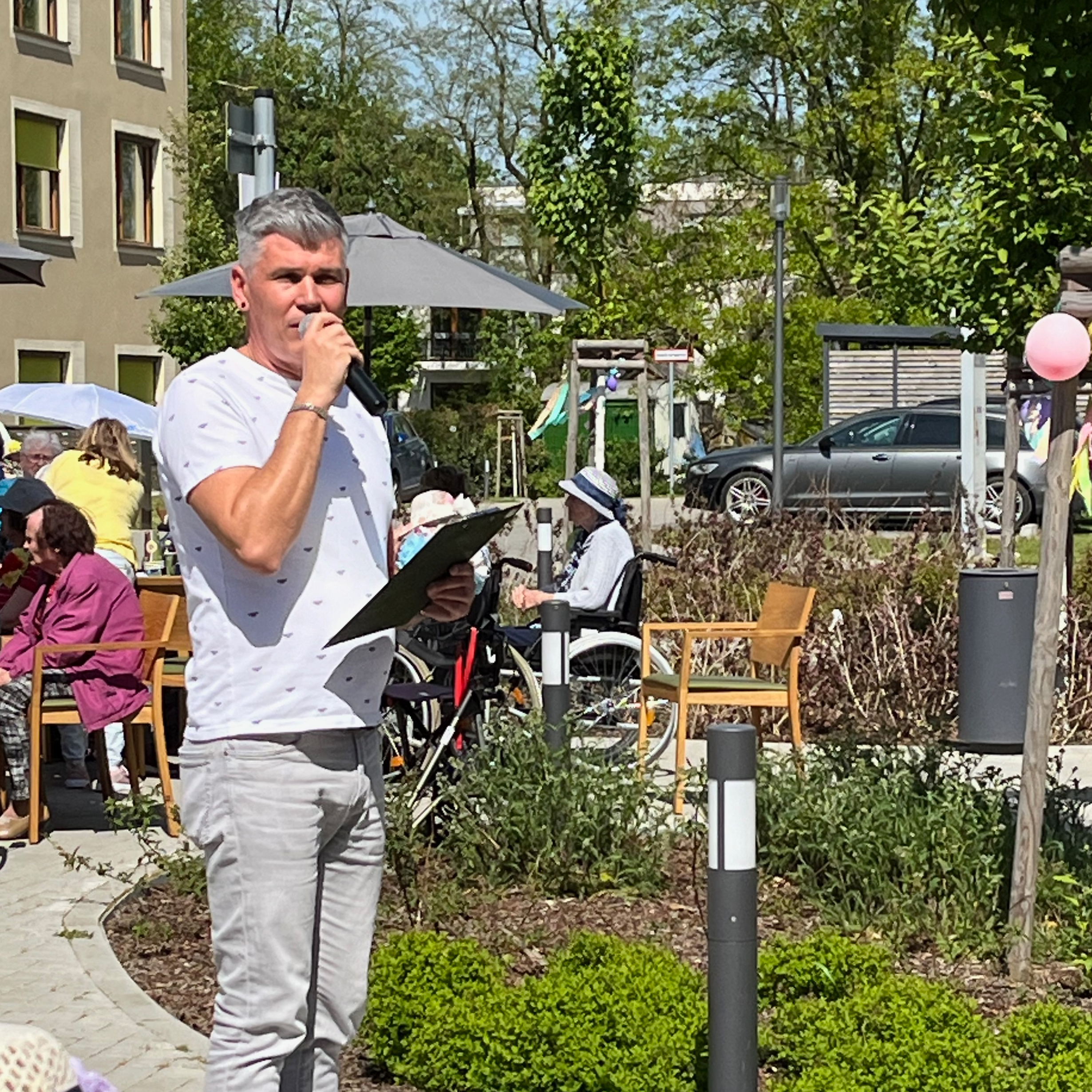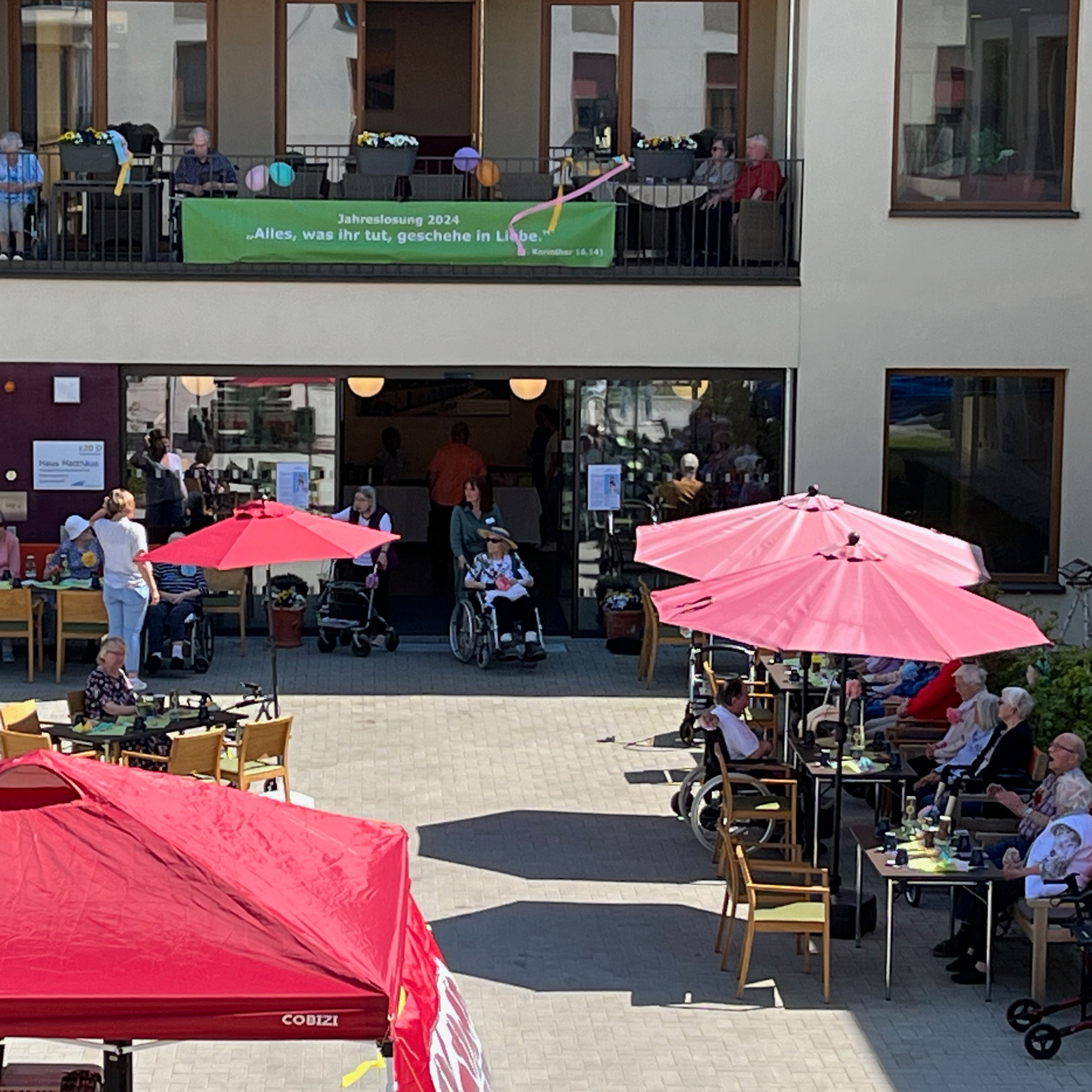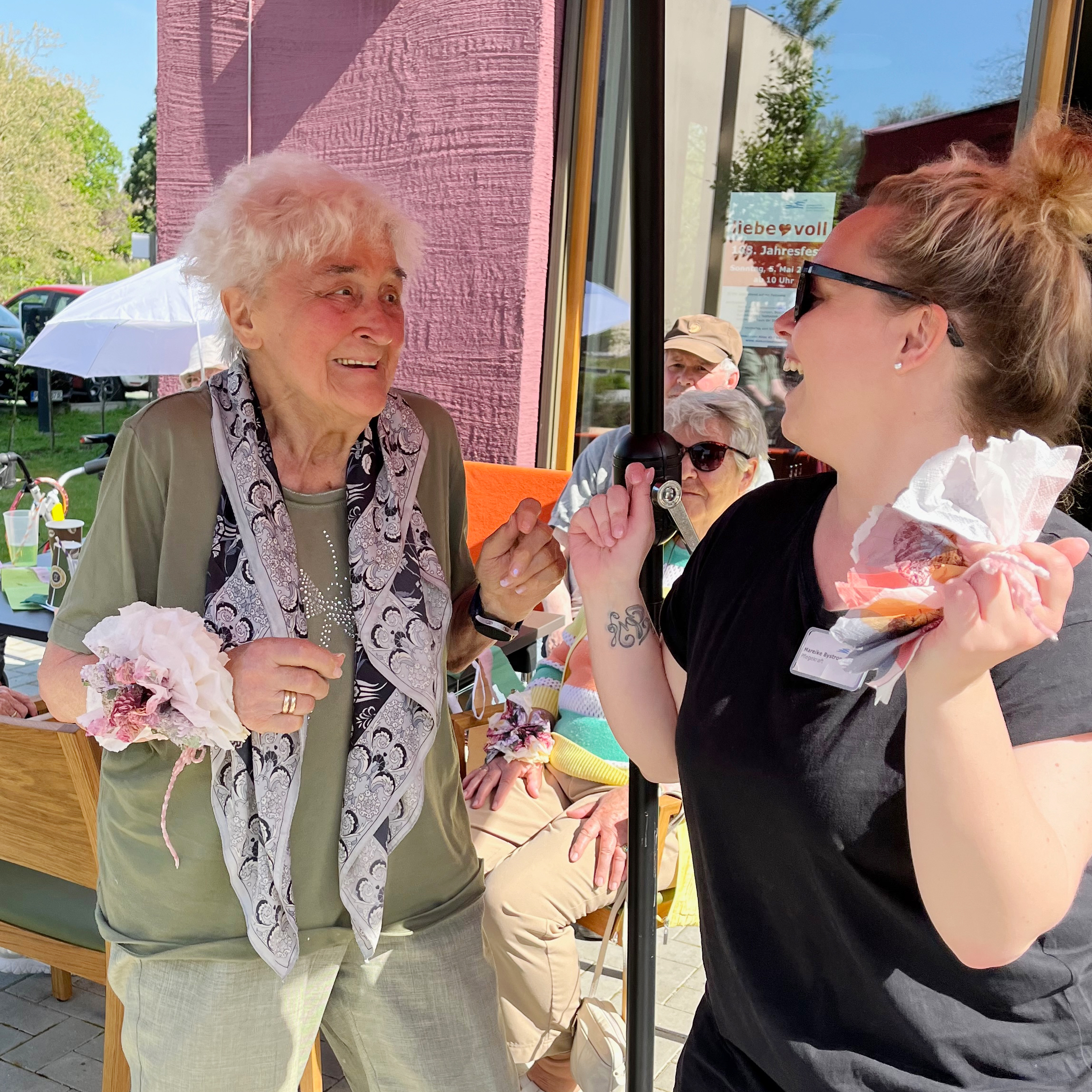 „Was für ein schönes Fest.“ - Das waren die Worte einer Bewohnerin zum ersten „Tanz in den Mai“ in unserem Altenhilfezentrum. Rund 80 Teilnehmende aus den verschiedenen Einrichtungen auf dem Gelände kamen am 30. April 2024 zusammen, um bei schönstem Sonnenschein, Kaffee, Kuchen und Maibowle gemeinsam in den Mai zu feiern. Alle Besucherinnen und Besucher erhielten zu Beginn eine selbstgebastelte Blume.