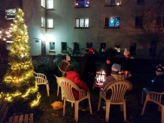 Zur Dämmerung fanden sich die vorfreudigen Bewohnerinnen und Bewohner sowie die Mitarbeitenden der Wohnstätte I im Gartenhaus ein. Ein Funkeln war in jedem Auge zu erkennen und alle genossen das gemütliche Beisammensein. Gemeinsam lauschten wir der Adventsmusik, wärmten uns am Feuer und genossen das Miteinander.