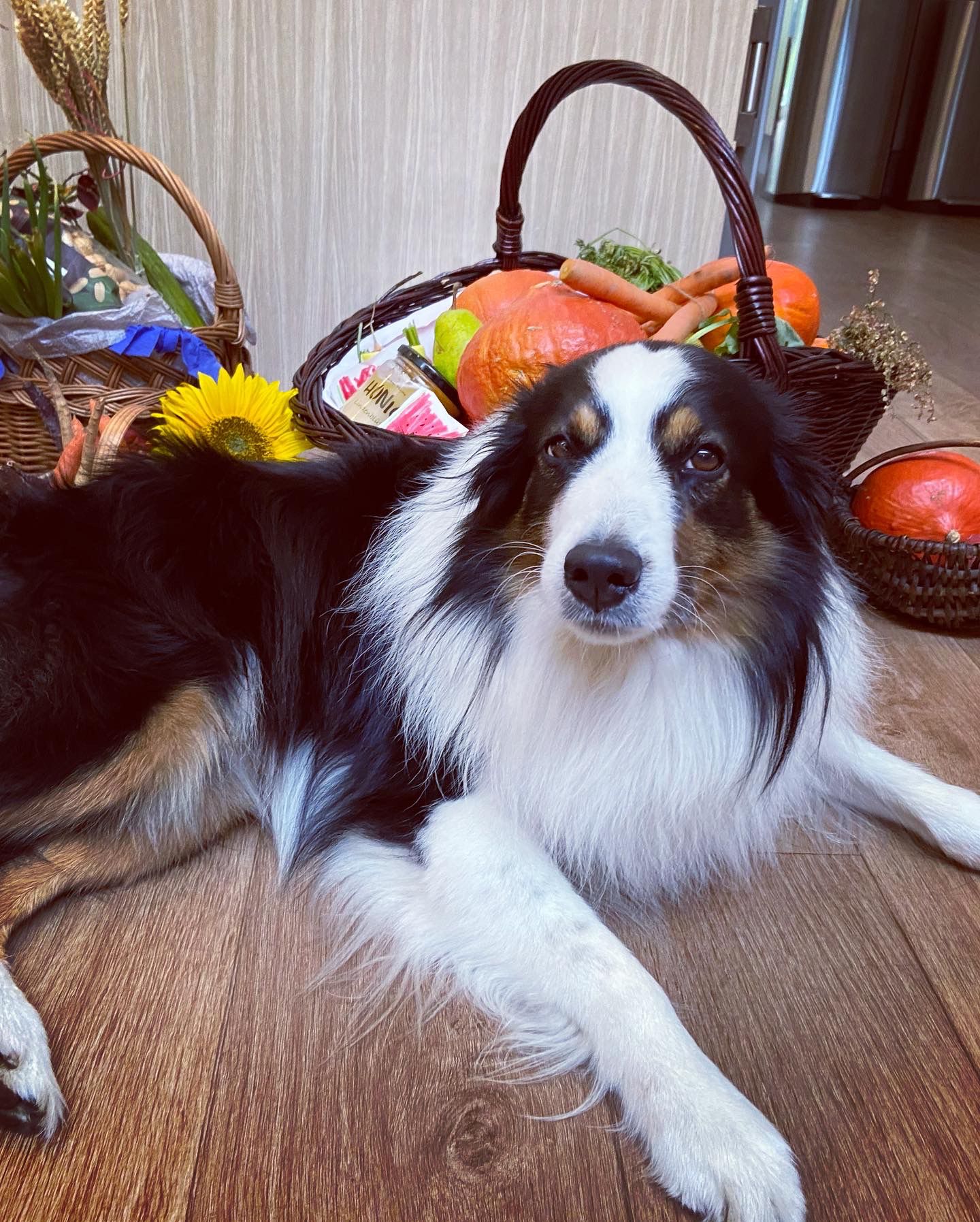 Die Kita-Kinder auf Hermannswerder haben heute unserem hiesigen Evangelischen Hospiz Erntedank-Gaben gebracht und Lieder gesungen. Unser Hospizhund Spencer hat sich auch sehr über die Gaben gefreut.