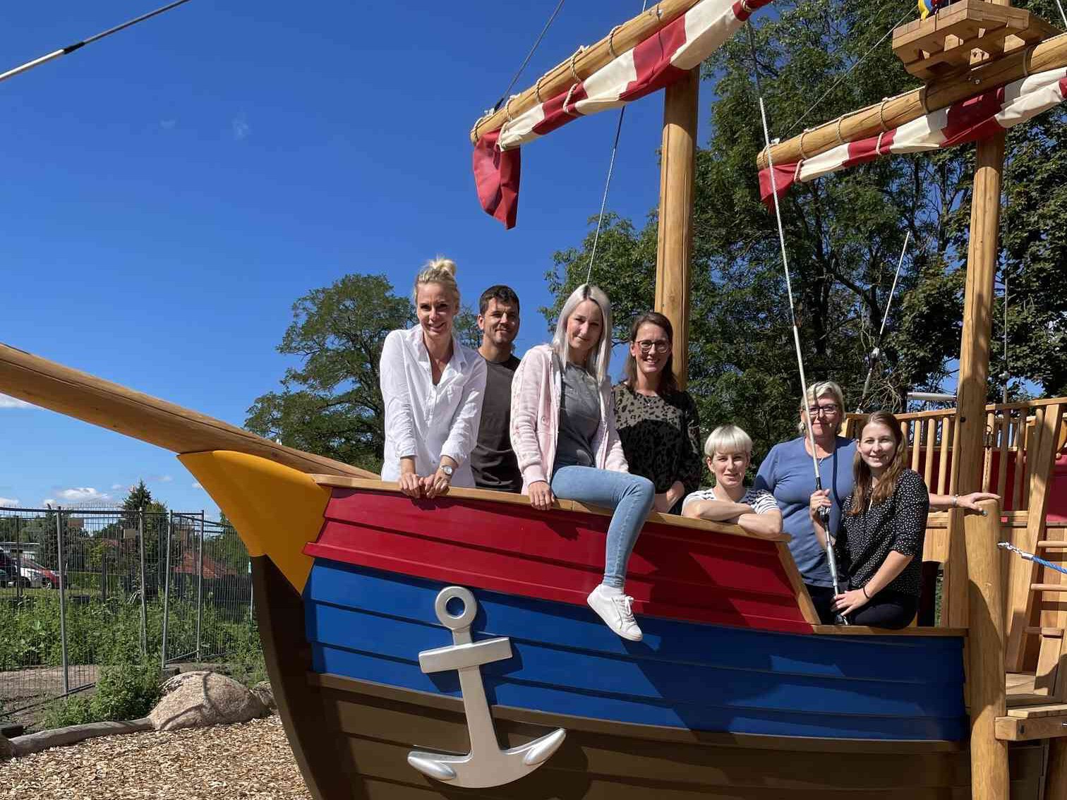 Am 23. September 2022 haben wir unseren Evangelischen Kindergarten „Arche Noah“ in Caputh offiziell eröffnet - die Kita-Kinder hatten die "Arche Noah" bereits am 1. September erobert. Besonders beliebt - auch beim Kita-Team (s. Foto) - ist das große Spielschiff im Garten, das dem Kindergarten von der Stiftung Kinderförderung eines bekannten Spielzeugherstellers zur Verfügung gestellt wurde.