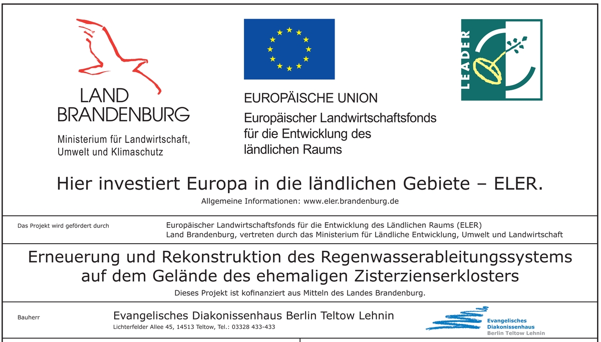 Die Erneuerung und Rekonstruktion des Regenwasserableitungssystems wird im Rahmen der Leader-Förderung aus dem Europäischen Landwirtschaftsfonds für die Entwicklung des Ländlichen Raums (ELER) gefördert.