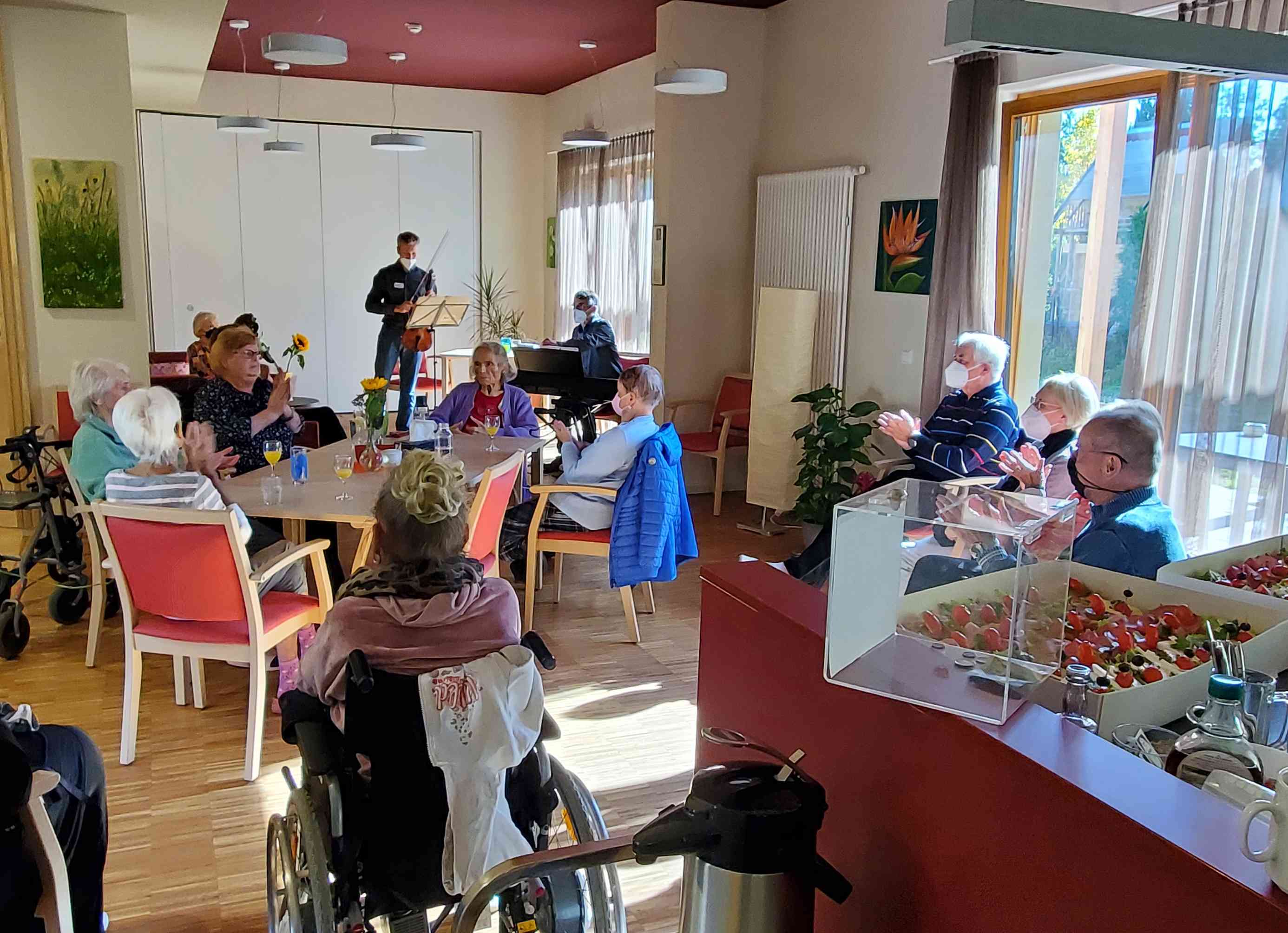 Am 7. Oktober 2022 hatte das Evangelische Hospiz Haus Markus Berlin-Mahlsdorf anlässlich des Welthospiztages zu einer Vernissage mit Bildern der Berliner Künstlerin Regine Nickel (*1943) eingeladen. An dem festlichen Empfang mit Sekt und Canapés nahmen Gäste des Hospizes und Angehörige, Mitarbeitende sowie weitere Besucherinnen und Besucher teil. Für die musikalische Umrahmung sorgten Jakob Eger vom Sozialdienst des Hospizes an der Viola sowie Eberhard Hinz am Klavier. Alle Bilder standen zum Verkauf, einen Teil der Erlöse stellte Regine Nickel für die Arbeit im Hospiz zur Verfügung.